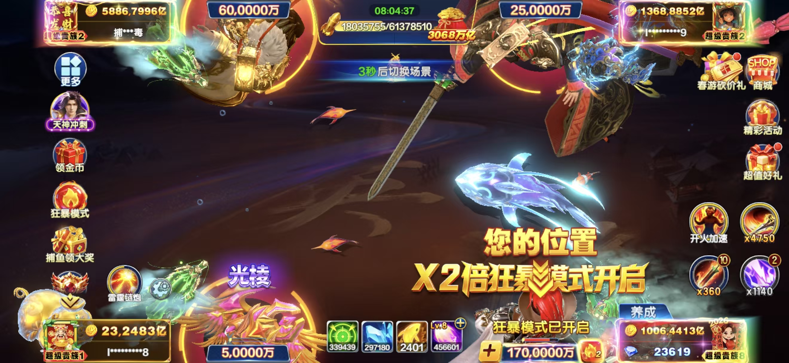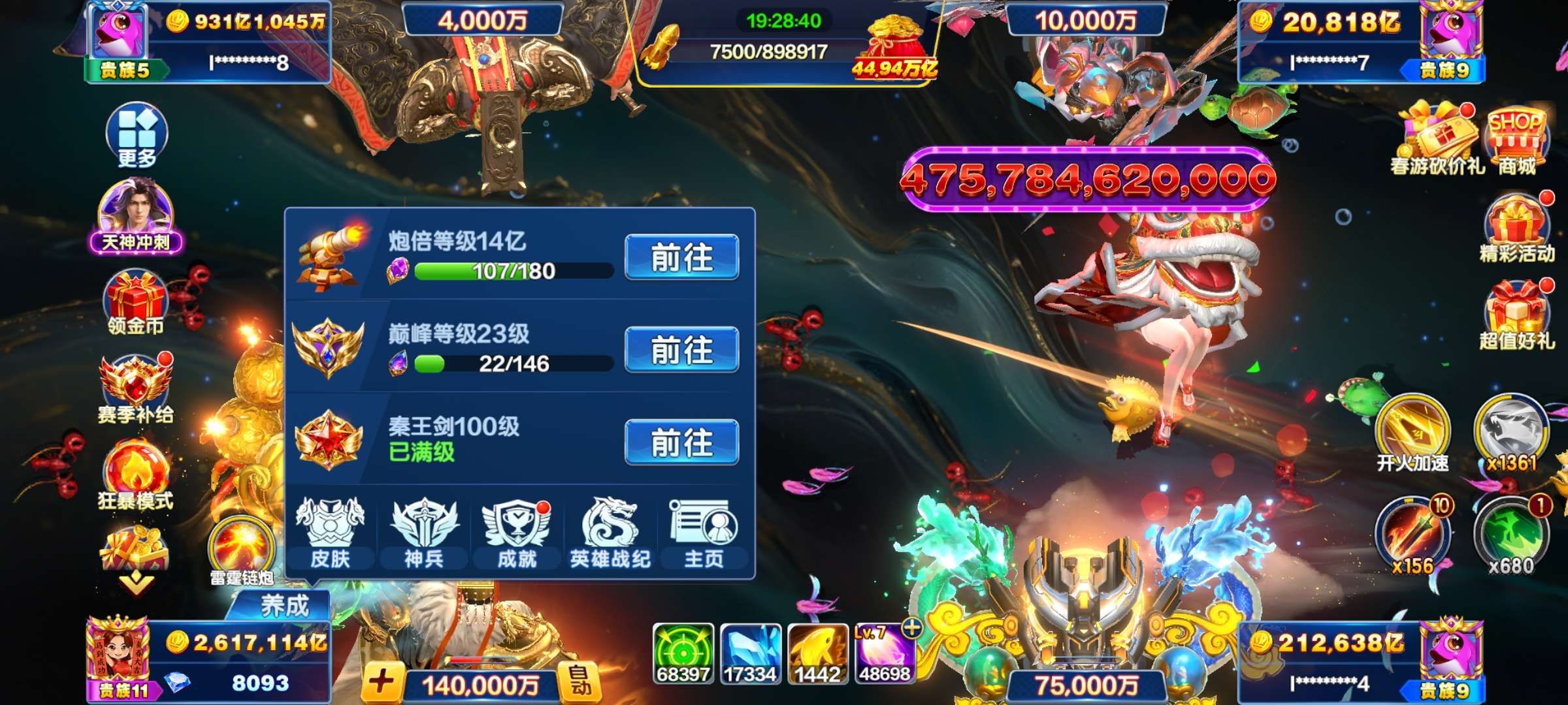 捕鱼大咖,2500万亿,无限火力,纯玩,破产改密