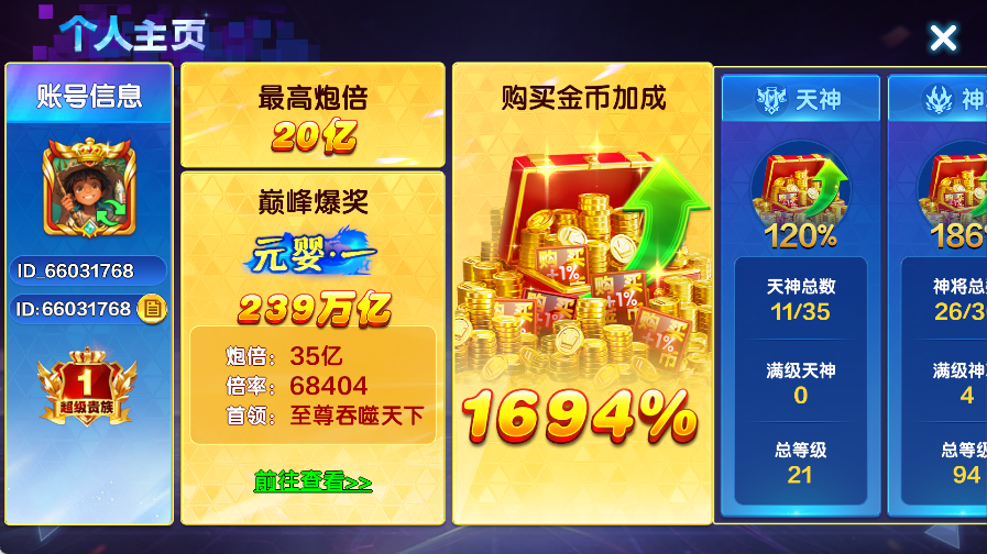 超级贵族3,金币加成2000%多,每天能领5兆多很多神将满级