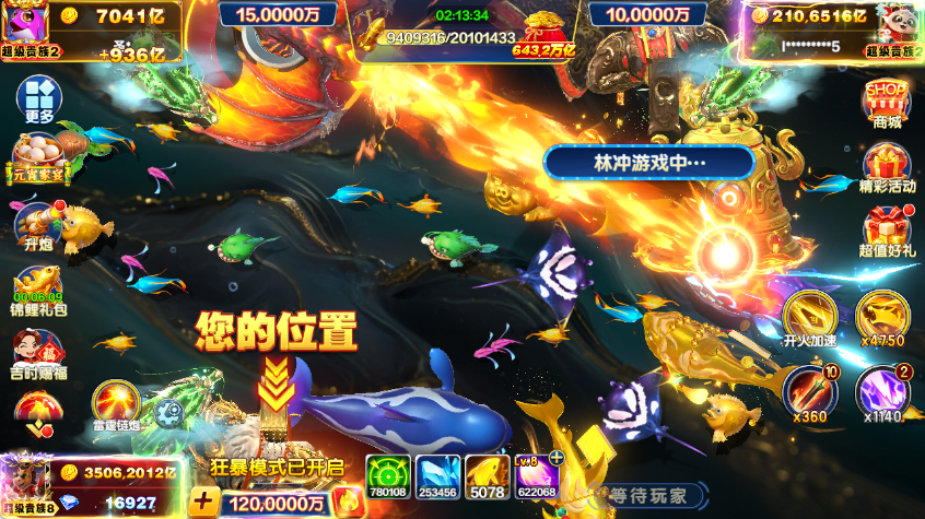 捕鱼大咖无限火力纯玩,1000万亿。狂暴已开。不玩可退。