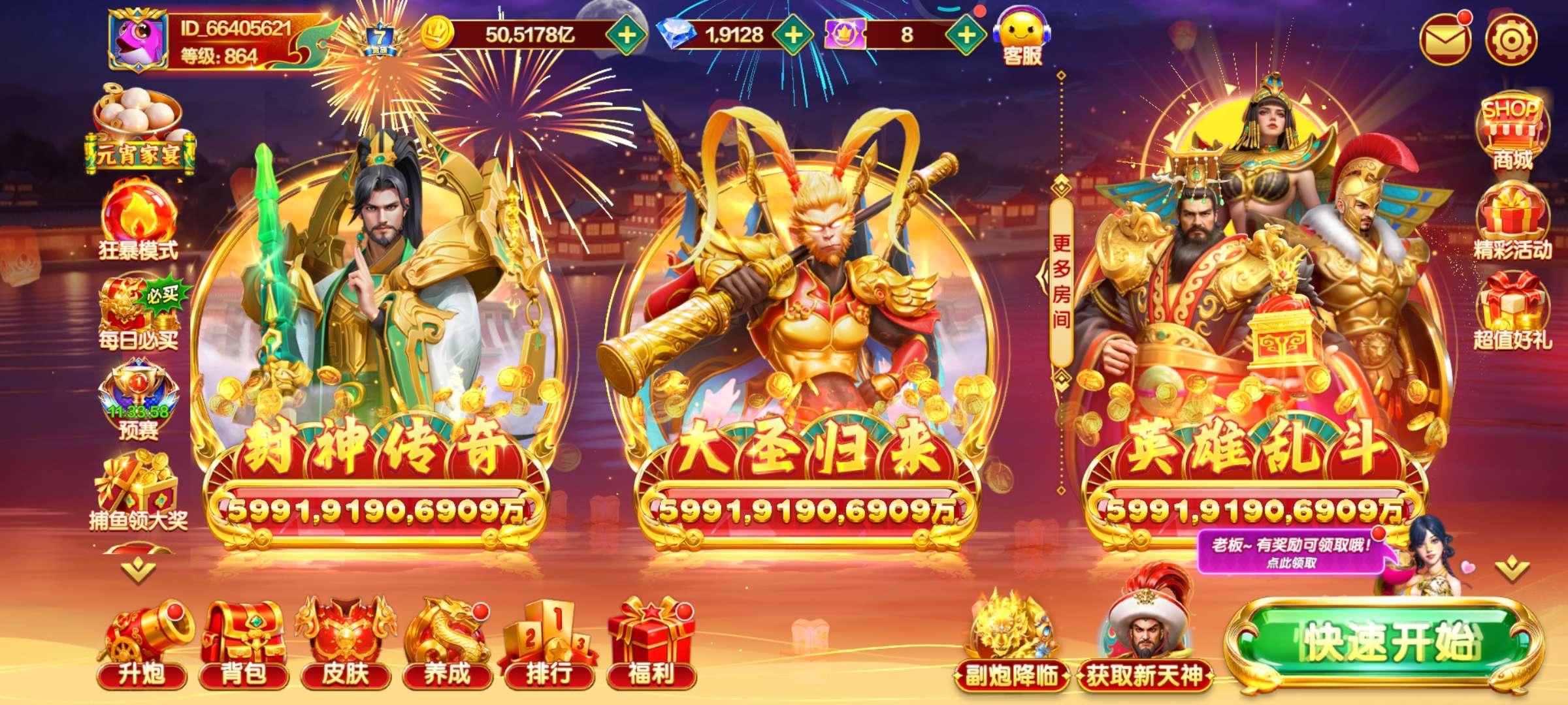 100-1000万亿副炮狂暴捕鱼大咖官服100万亿=45