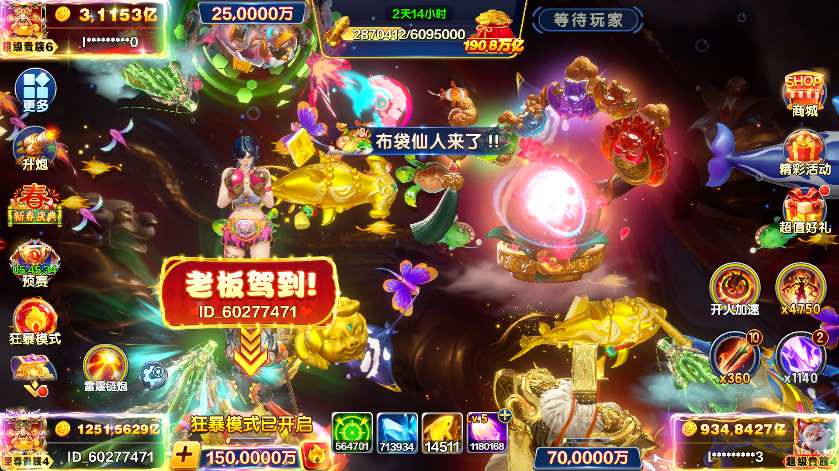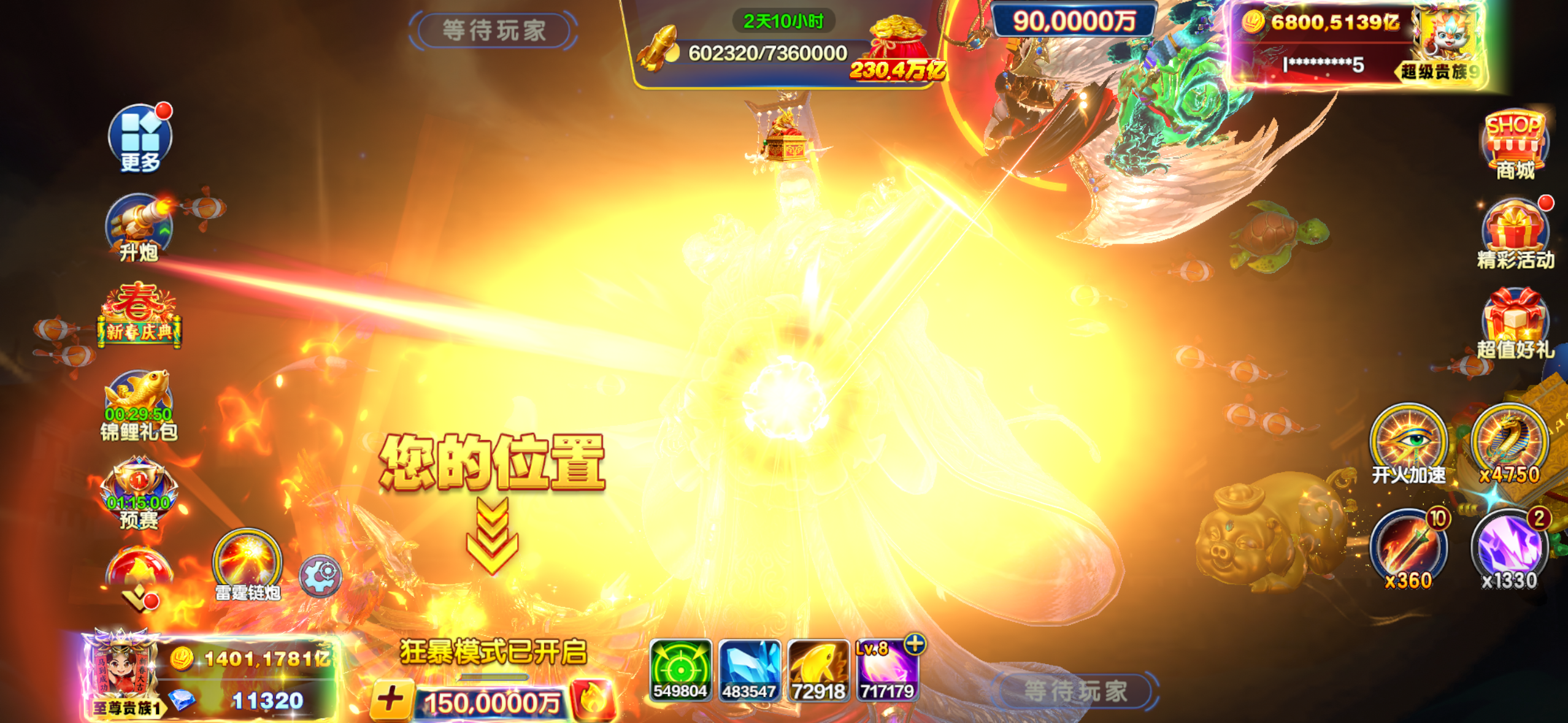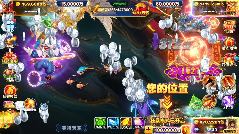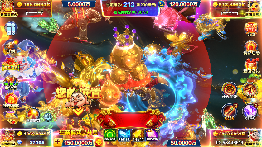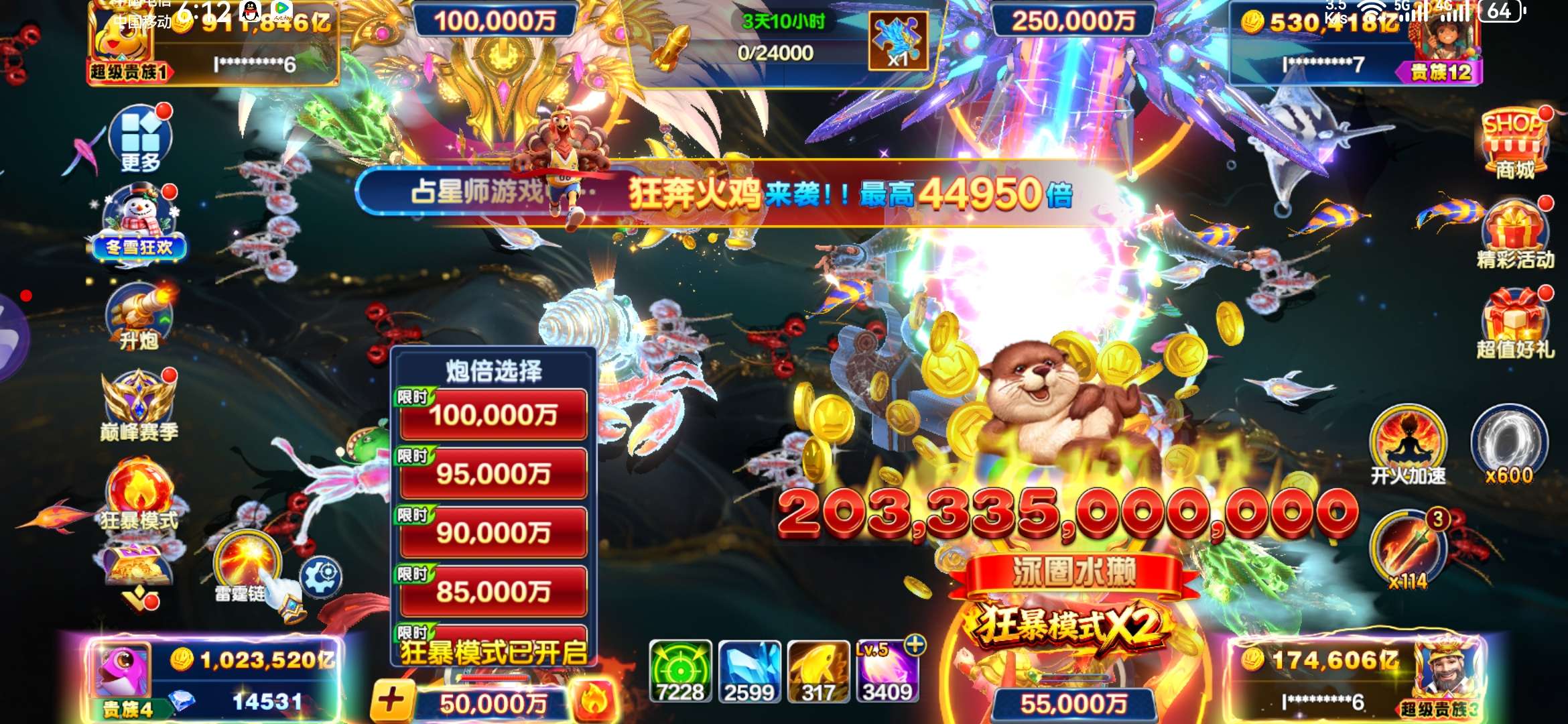 捕鱼大咖联想版本买断账号5亿炮 100万亿 已开启狂暴模式