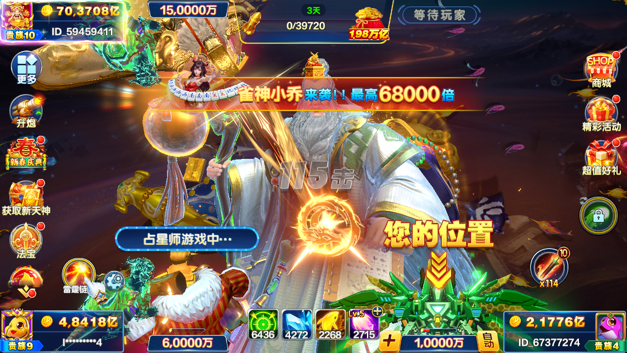捕鱼大咖无限火力纯玩,巅峰60,3300万亿,1000米