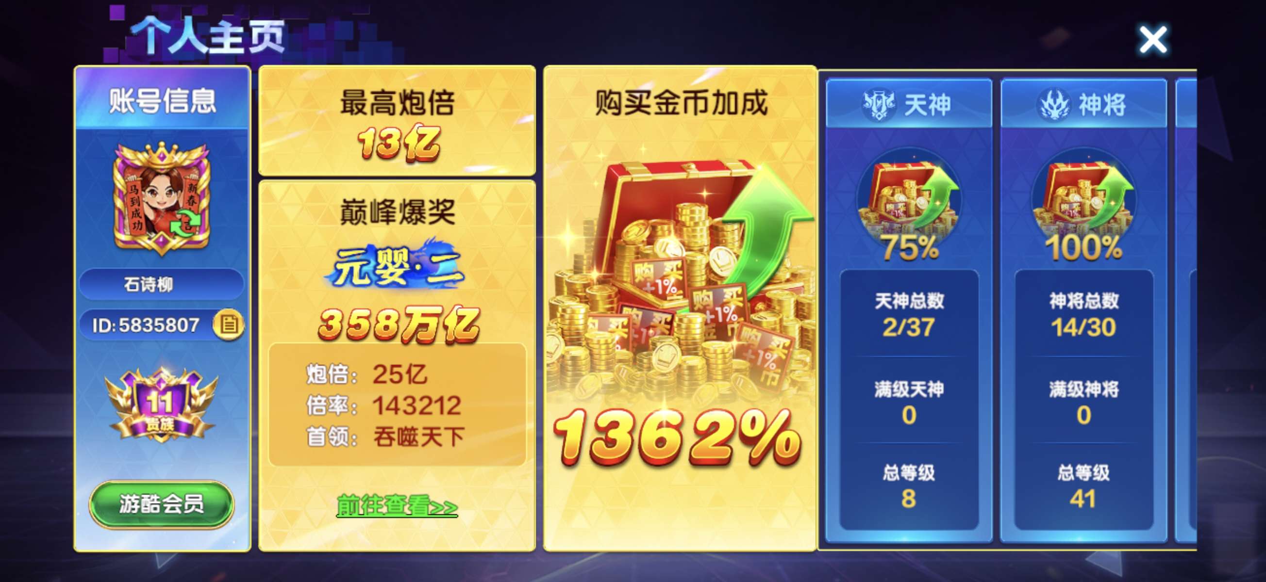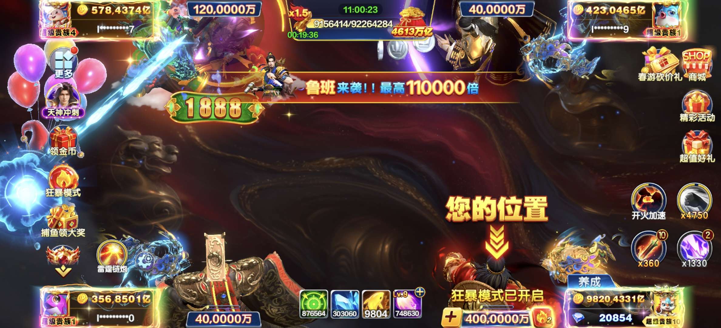 V11,123万亿,带天神,带限时天神副炮体验,买断出