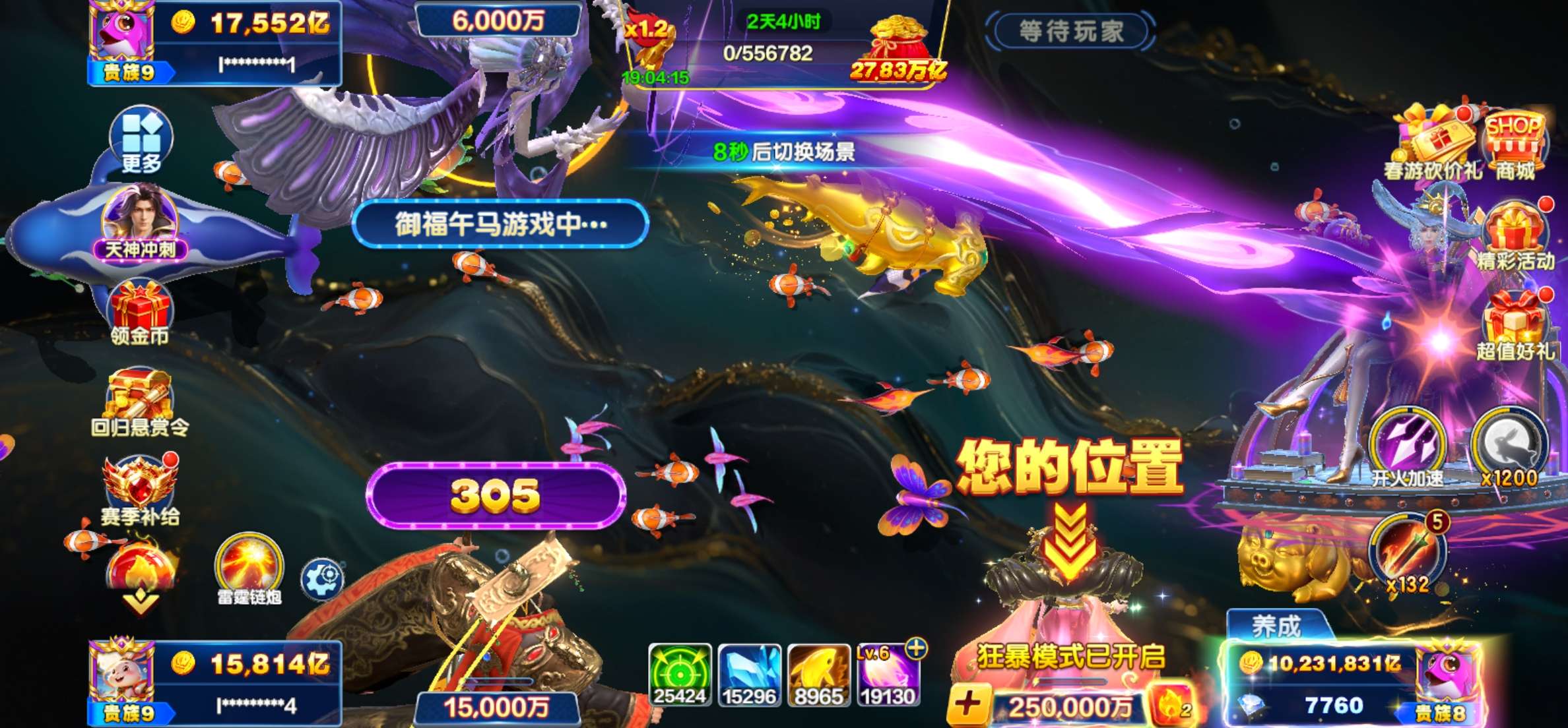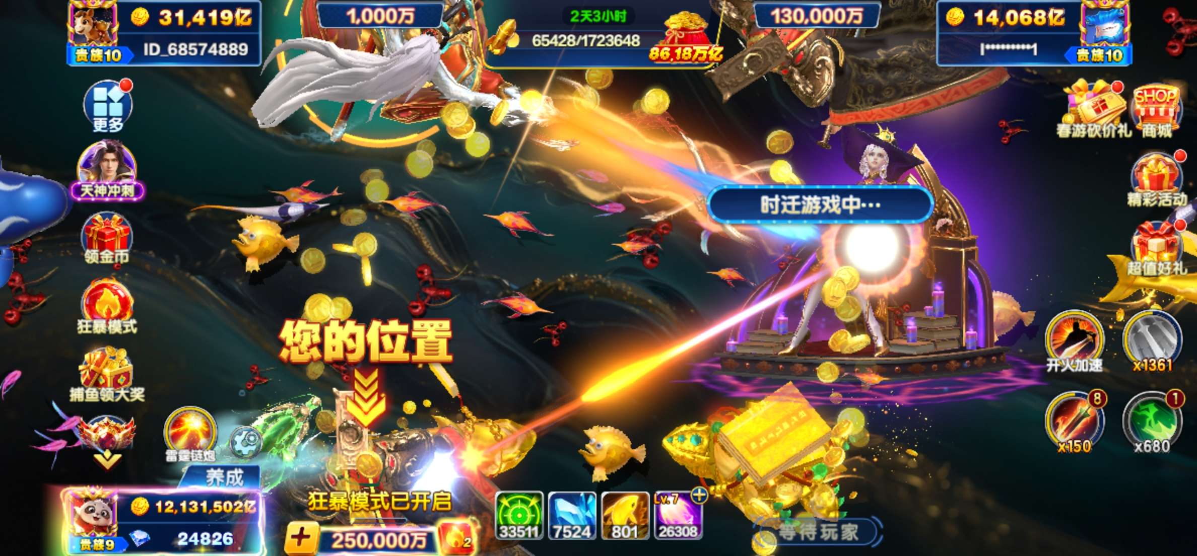 捕鱼大咖联想版价格超低,多买多送,全部有狂暴。赛季。限时天神副炮