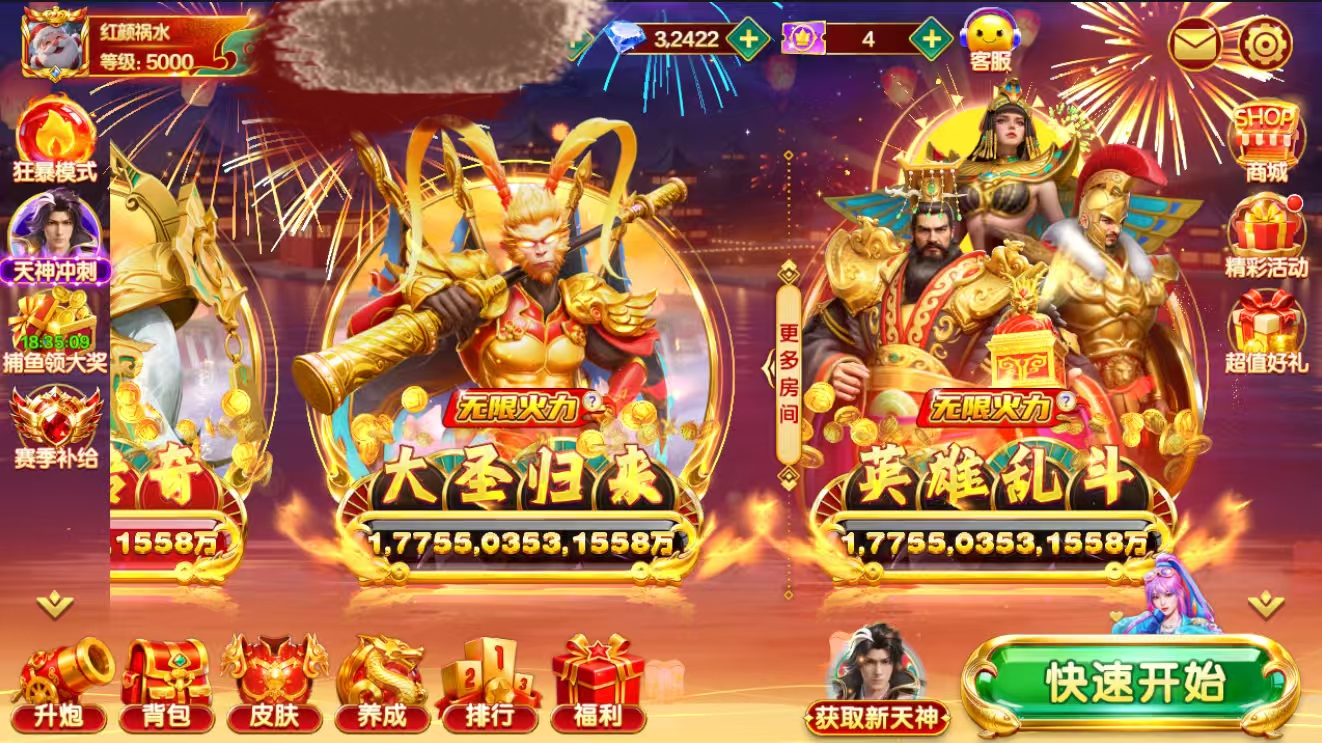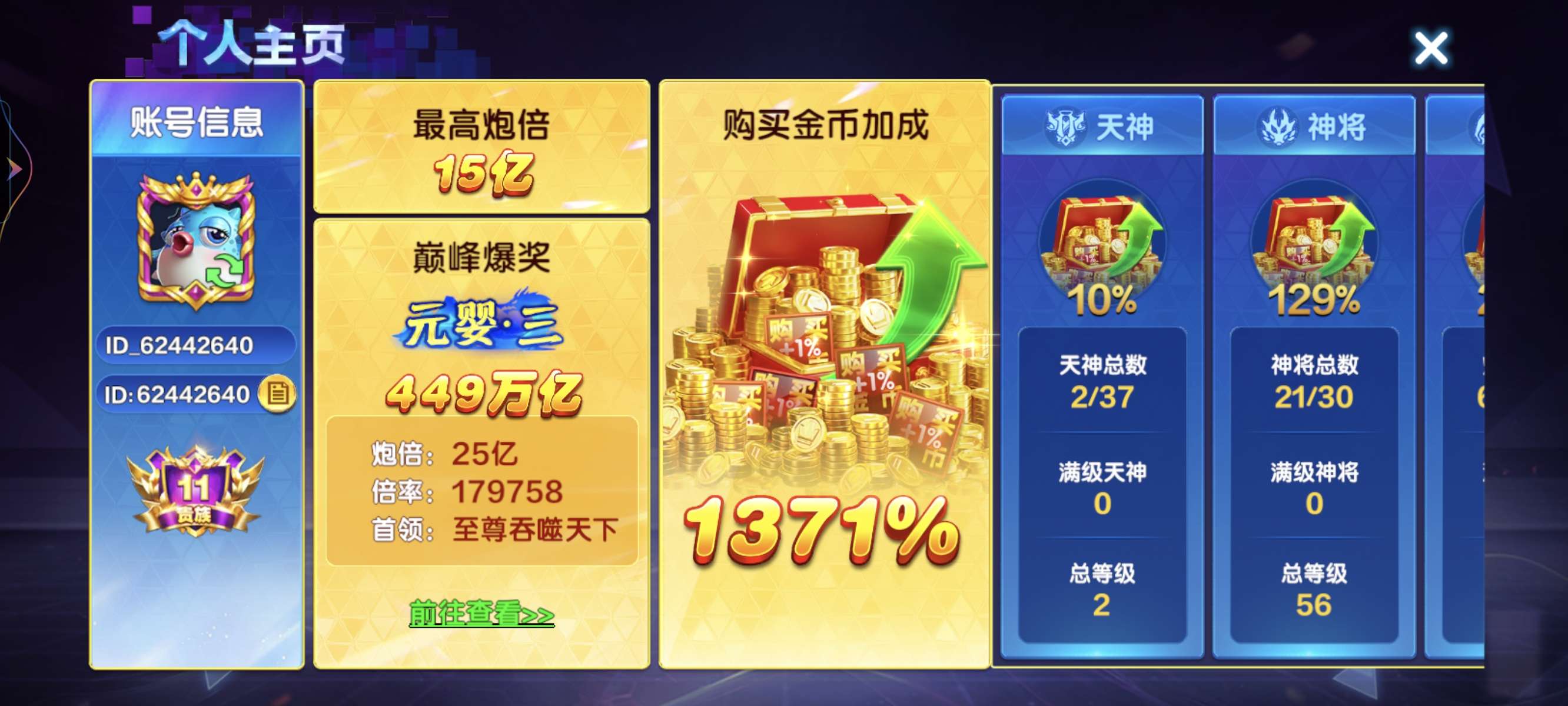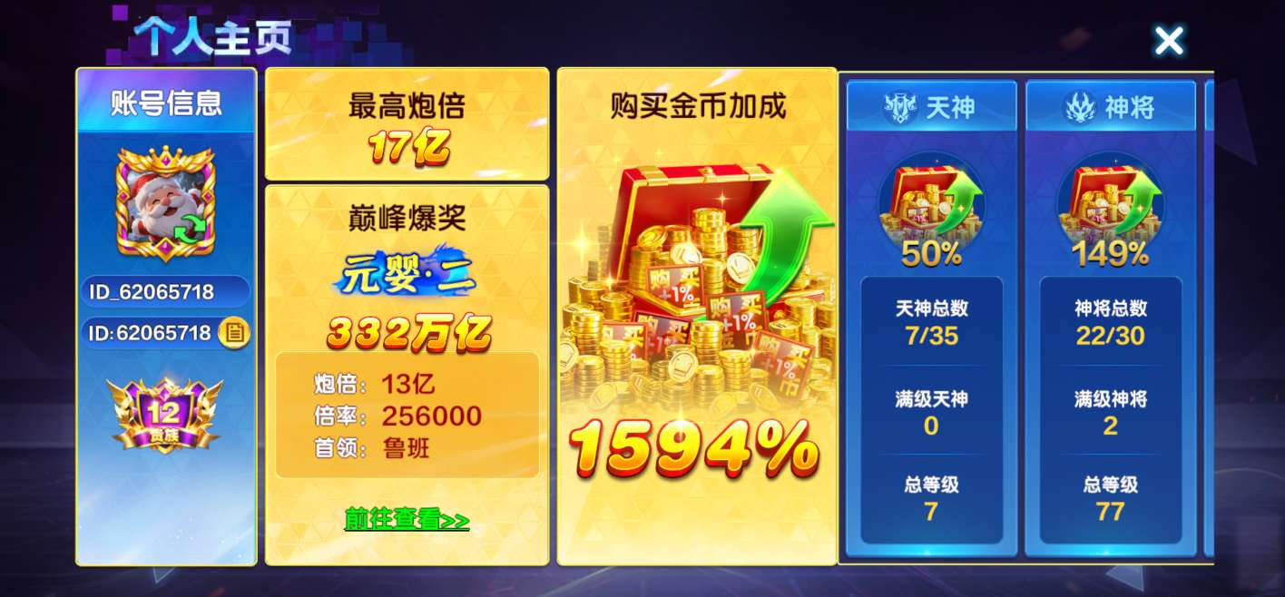 捕鱼大咖联想版,准V12带225万亿,限时30亿炮,带永久副炮和几个永久天神,买断处理