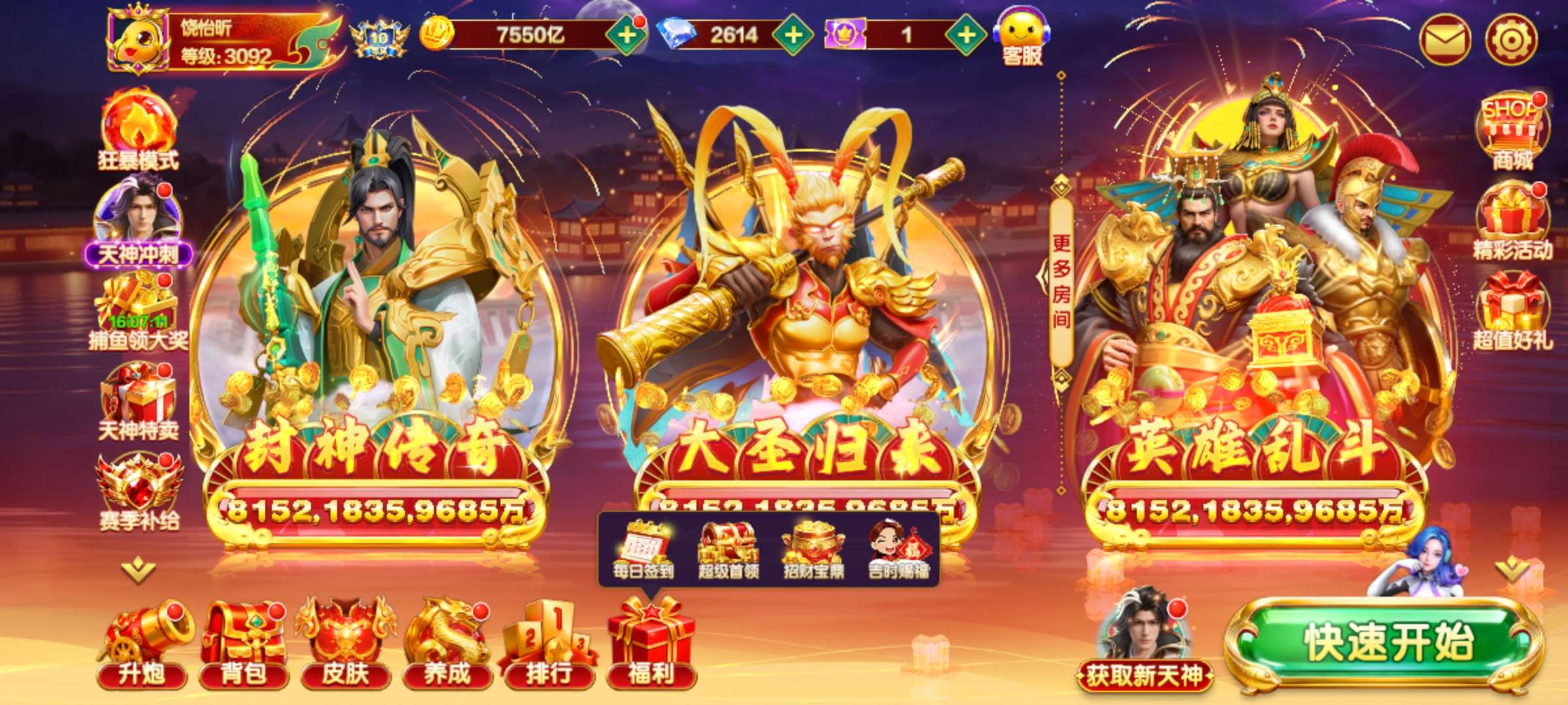 捕鱼大咖联想版,准V12带123万亿带月卡,限时20亿炮,带多个天神神将,特价处理,需要的联系
