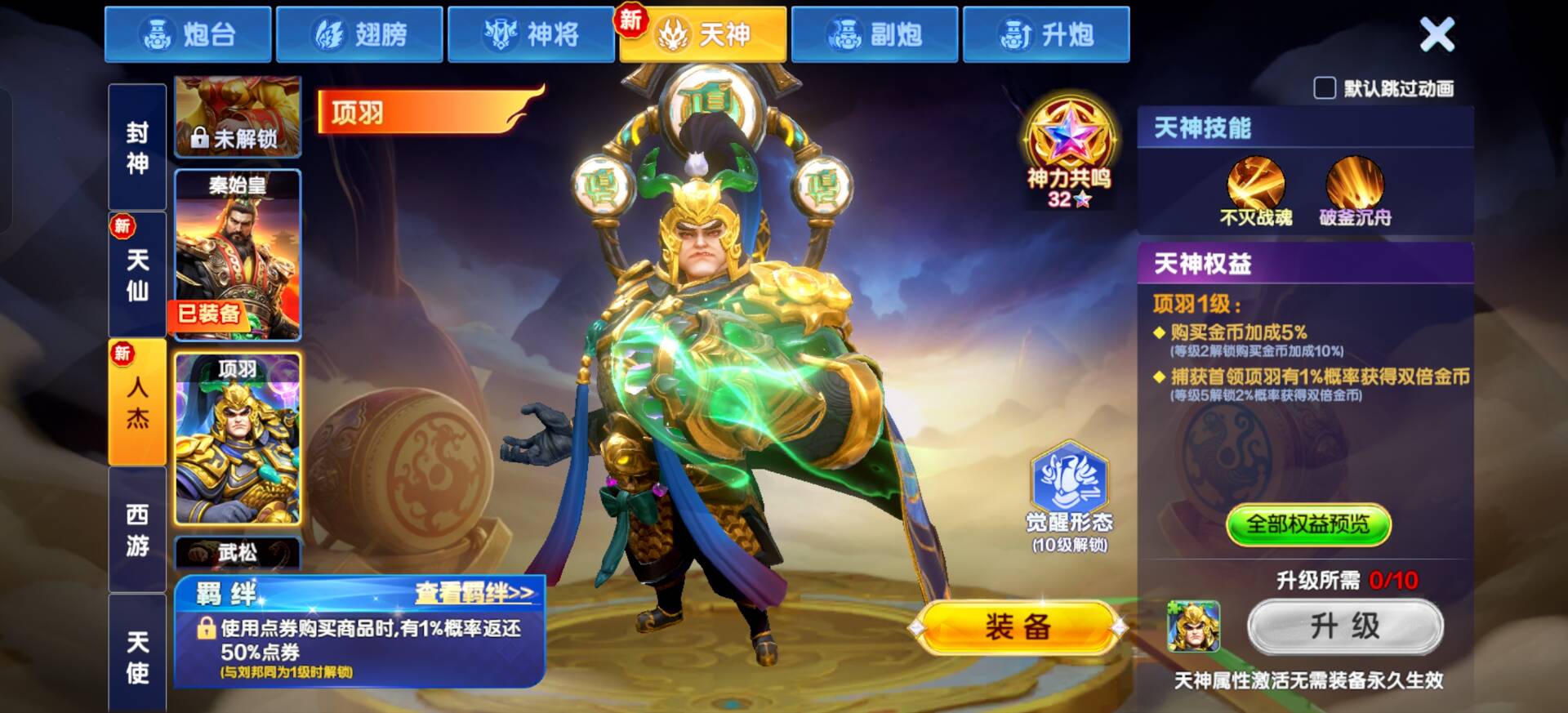 华为特权12,加成4450%至尊贵族1,差3000至尊2,60万炮,翻倍羁绊11%,点券返还19%