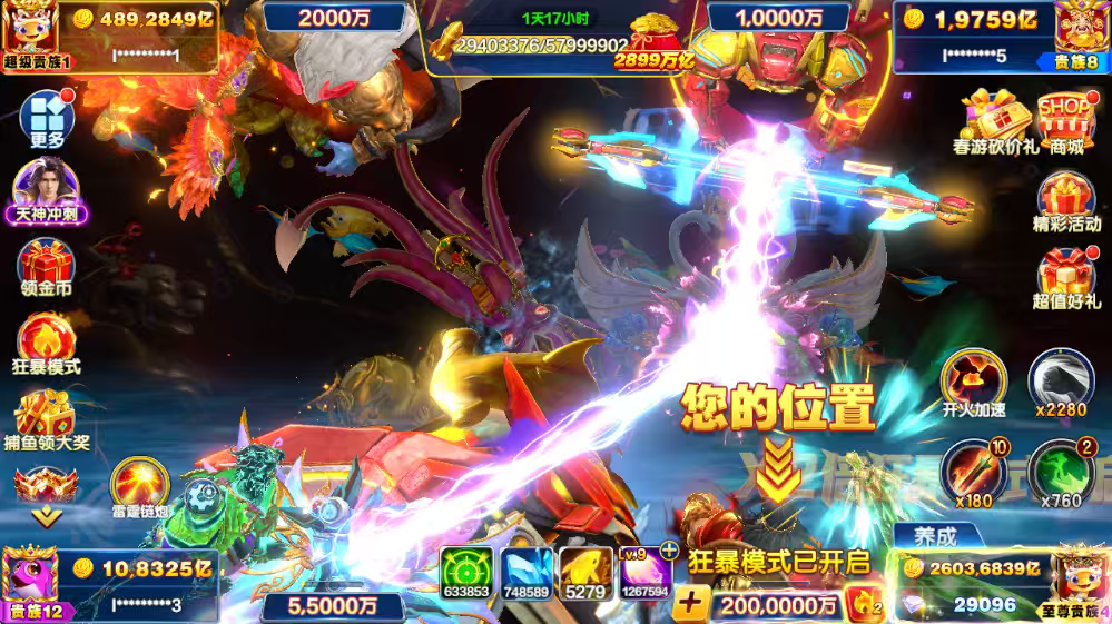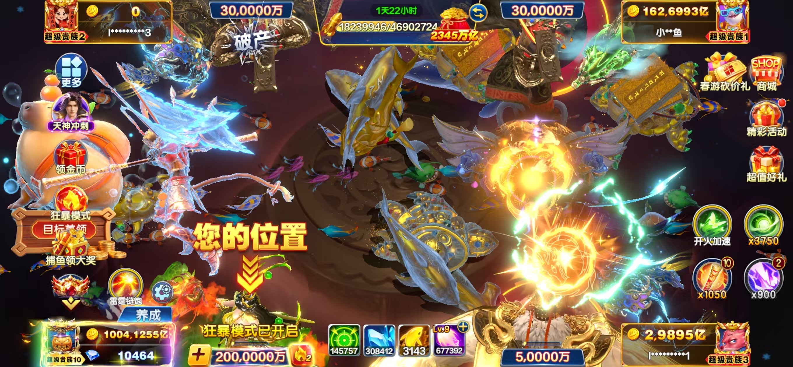 捕鱼大咖联想版实炮13亿炮永久副炮 两个永久天神 boss加成40