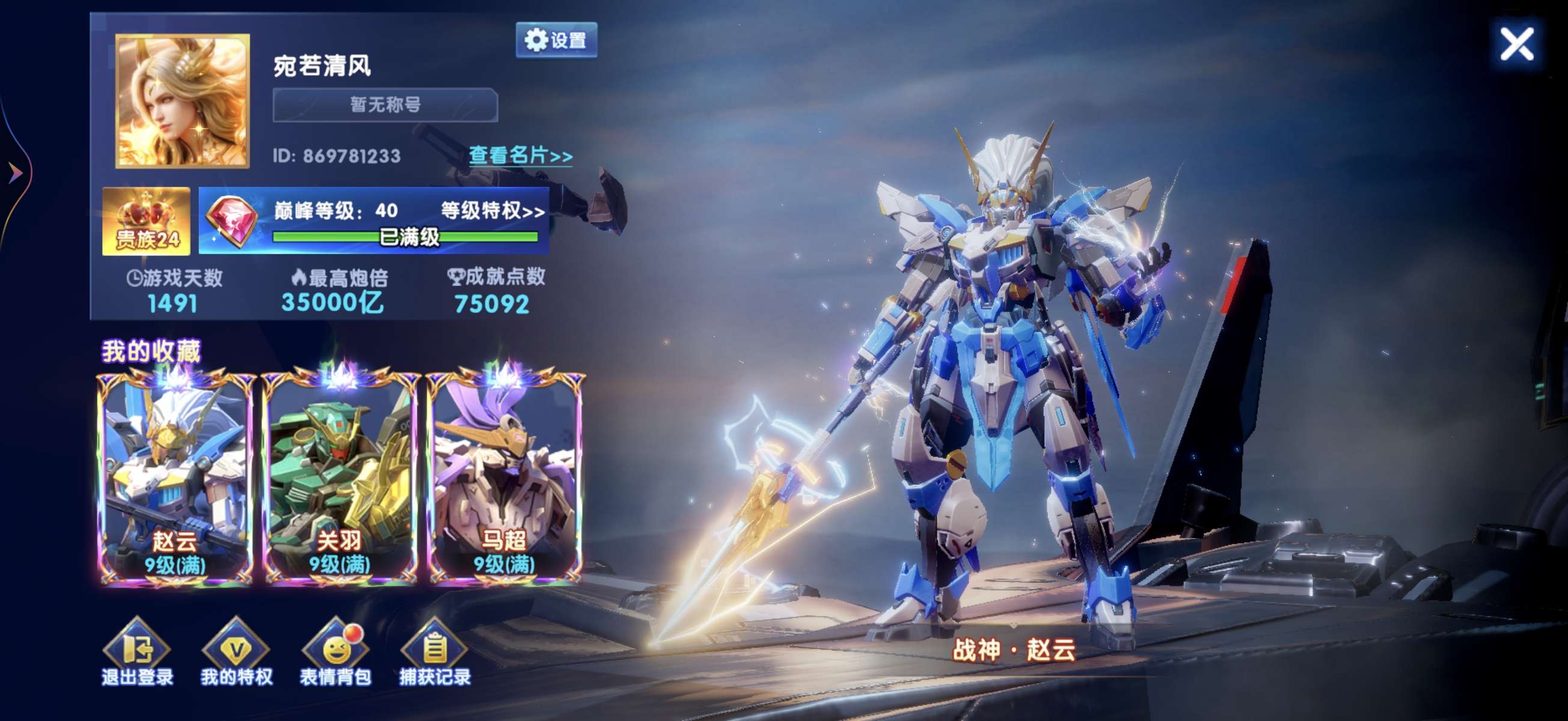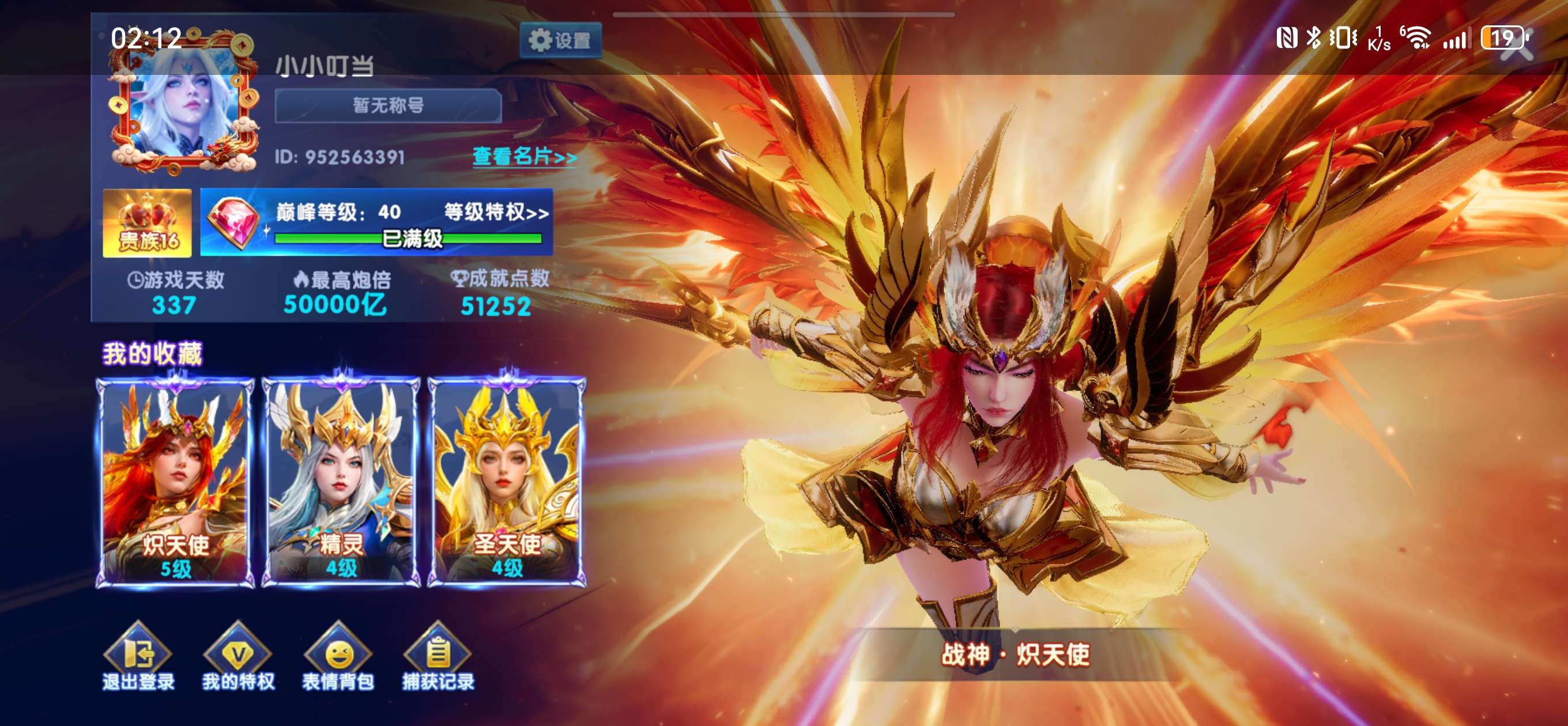 华为版本,加成1144,每日纯救济金八千多万亿,天使三级套,战神六级套,五级黄金朱雀神卫,组合技能。