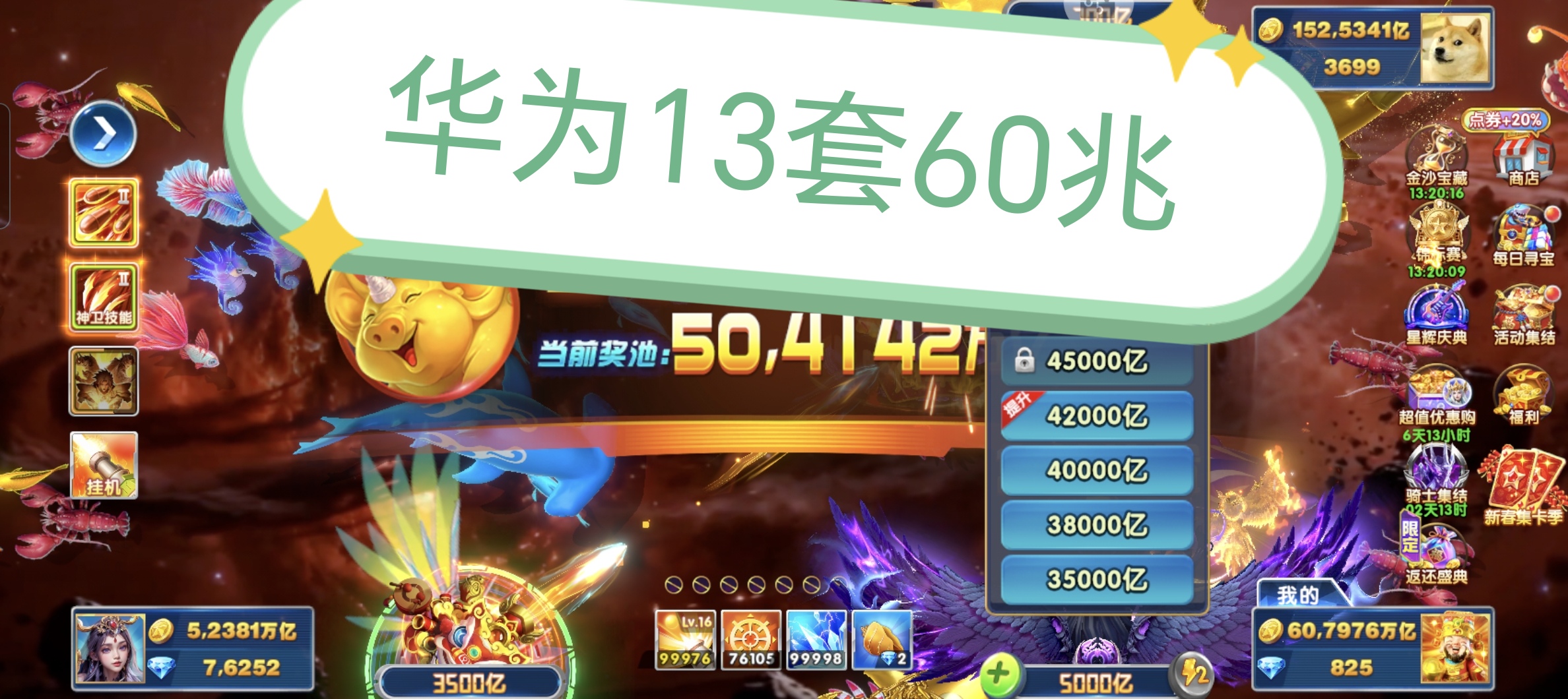 华为捕鱼大作战出分60兆可以回