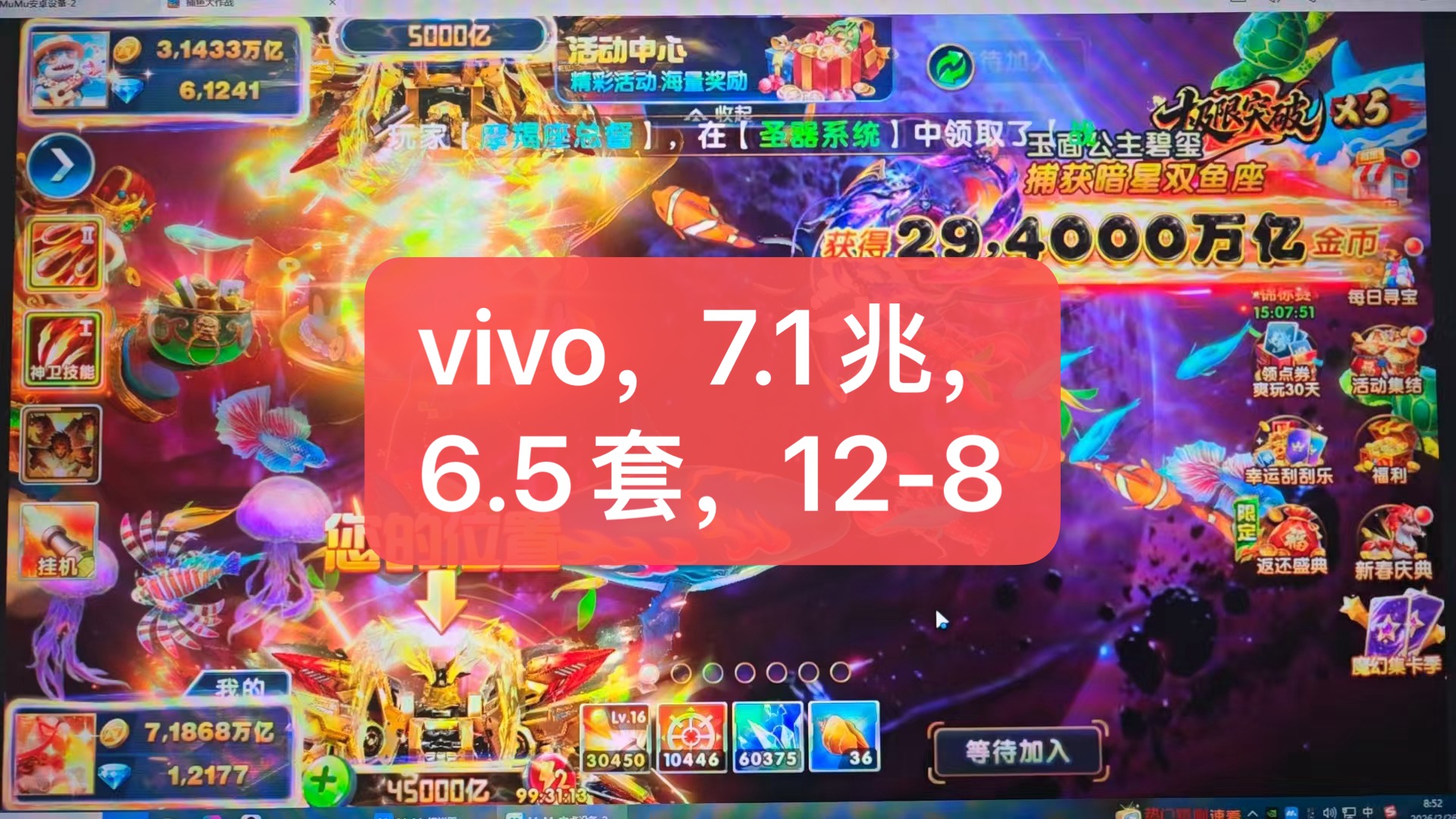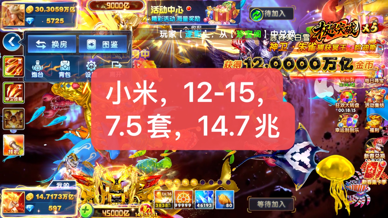 捕鱼大作战小米机甲百兆娱乐,双技能,满炮