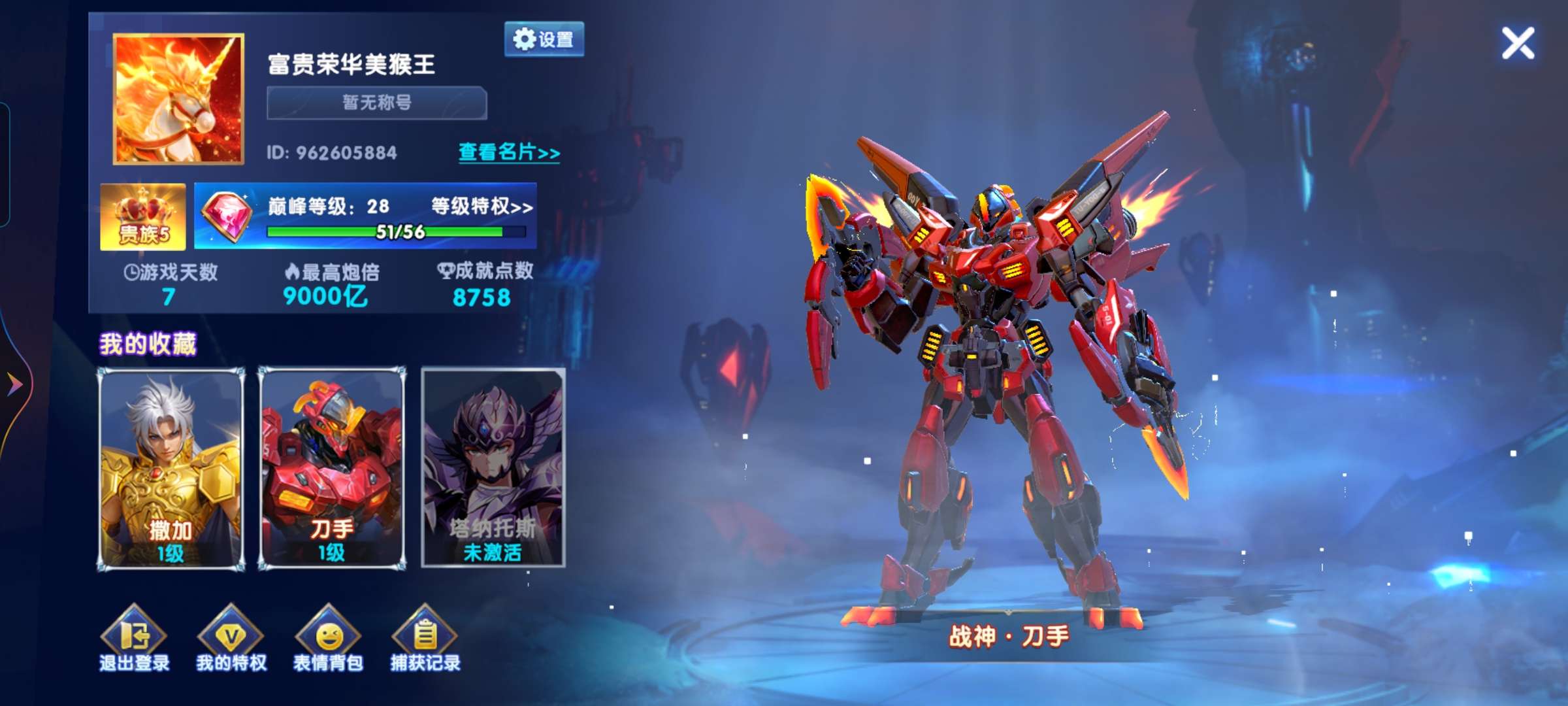 v23,15级套,返卷84.8,魅魔3级,西游99,机甲999,三国999,新战神999,山海699,天使8776超极品号差的碎片不多,加成可以搞到2300华为特权差3万12