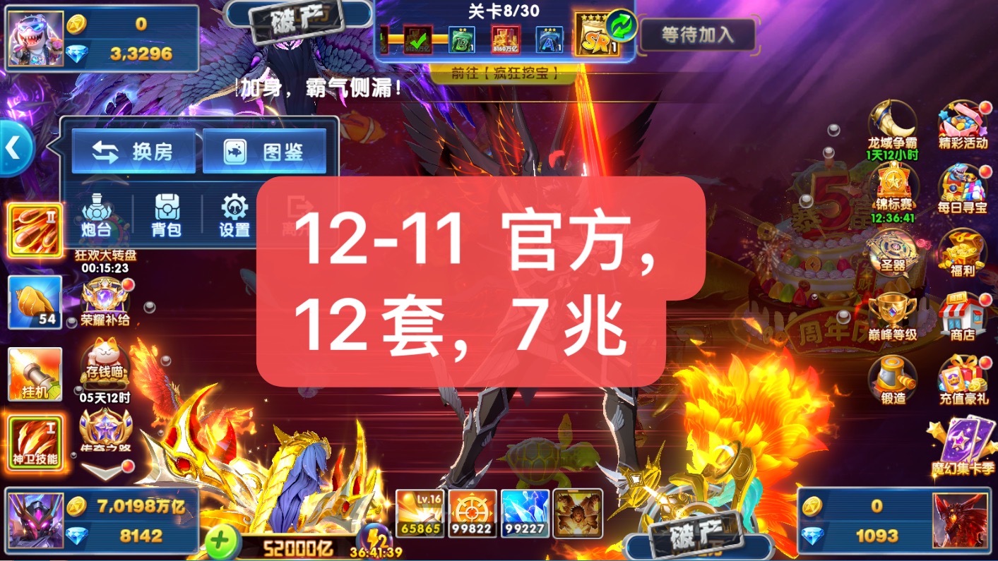 捕鱼大作战官方贵族24账号,送百纳显圣礼盒。礼盒可兑换20位战神及圣斗士碎片,还有12天22小时福利
