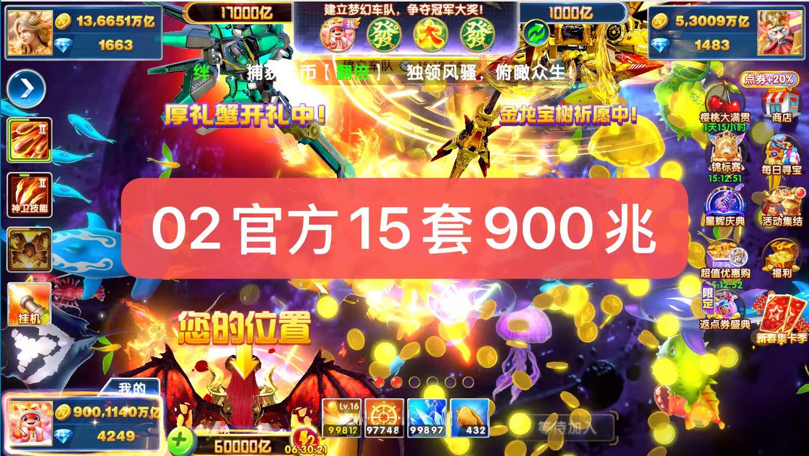 捕鱼大作战华为渠道V20 差5QV2114件套 纯救济2.4兆 全技能 三级天使套 双觉醒