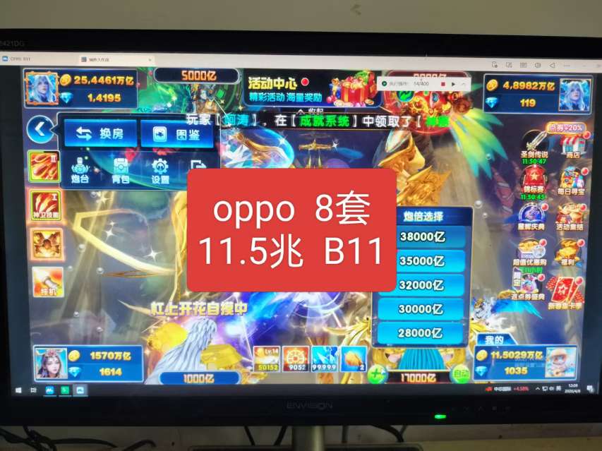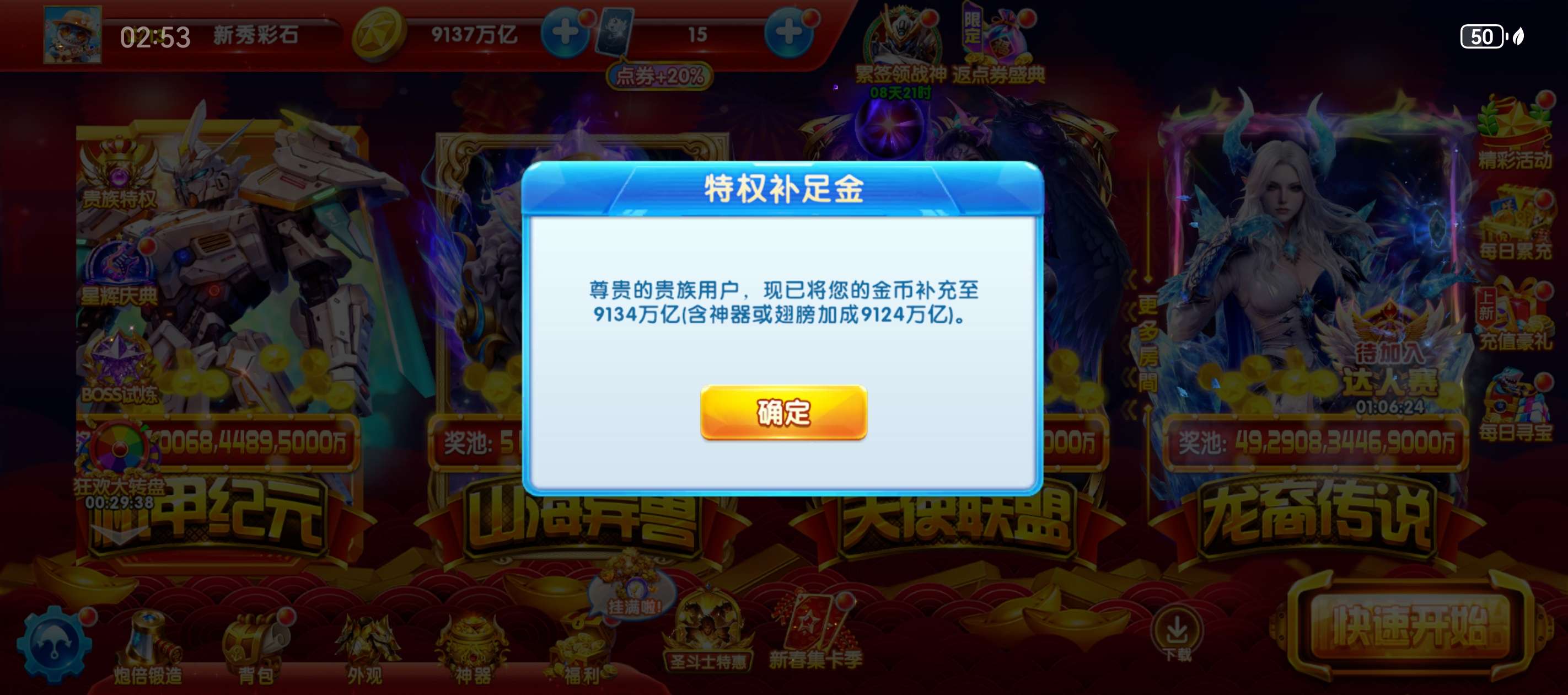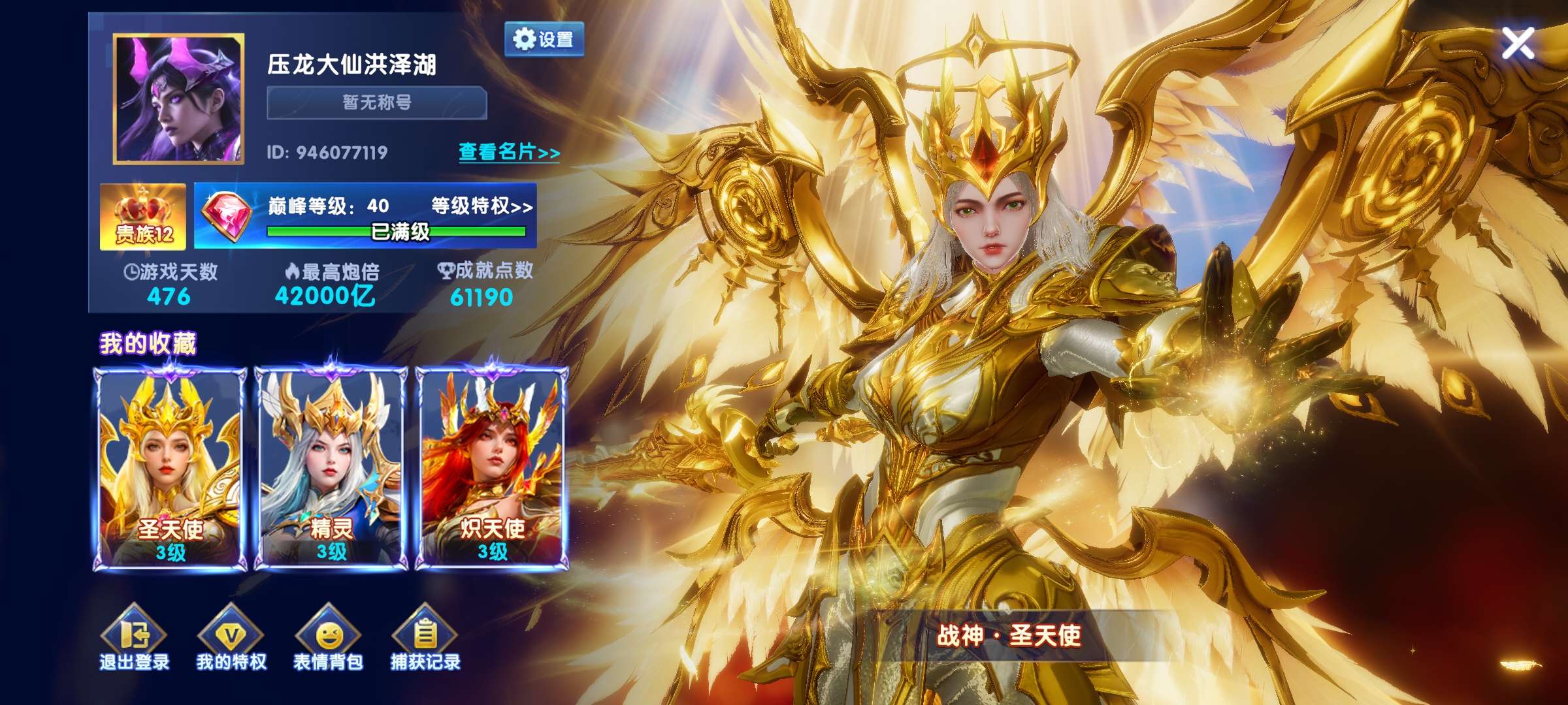 巅峰满级,救济金差不多一兆,翻倍10%,宙技天使必杀技都有,安卓OPPO支持换绑