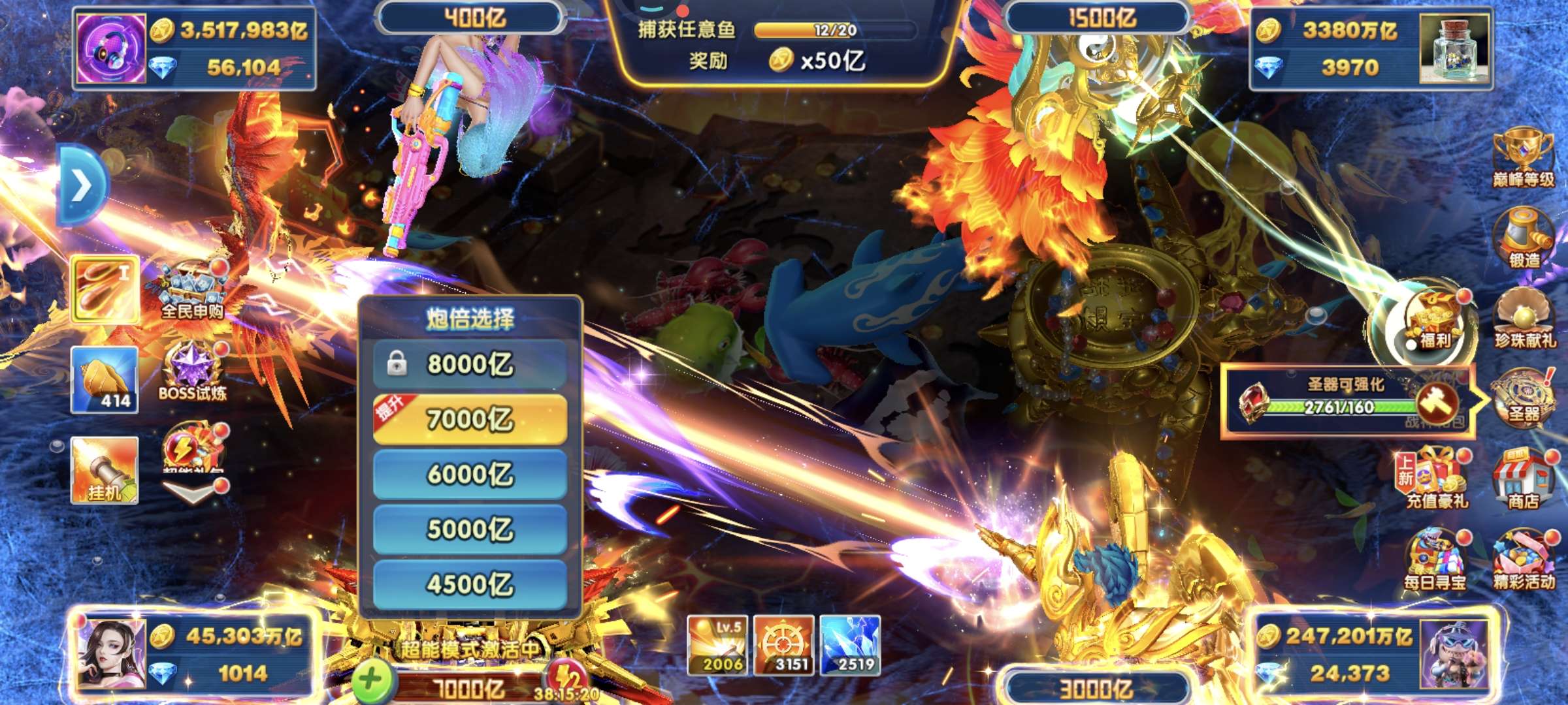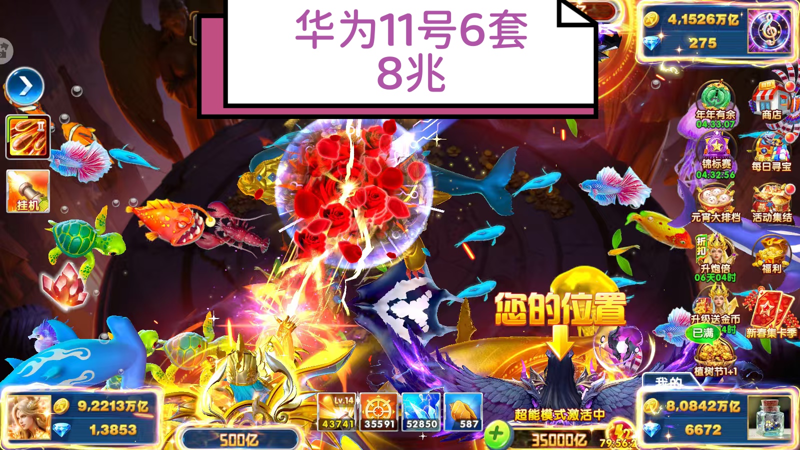 捕鱼大作战出租 20兆32000亿炮巅峰40多战神翅膀。