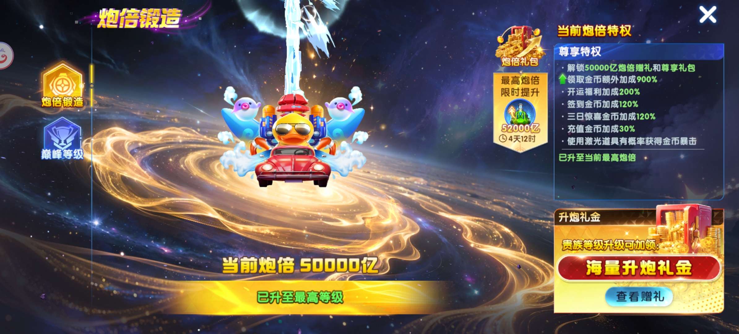 极品号华为 捕鱼大作战贵族25 加成2399%机甲十五套 巅峰(满级) 炮位60000(满级)圣器(满级) 当前版本细节全满 带金币3000兆亿 还有几万个激光