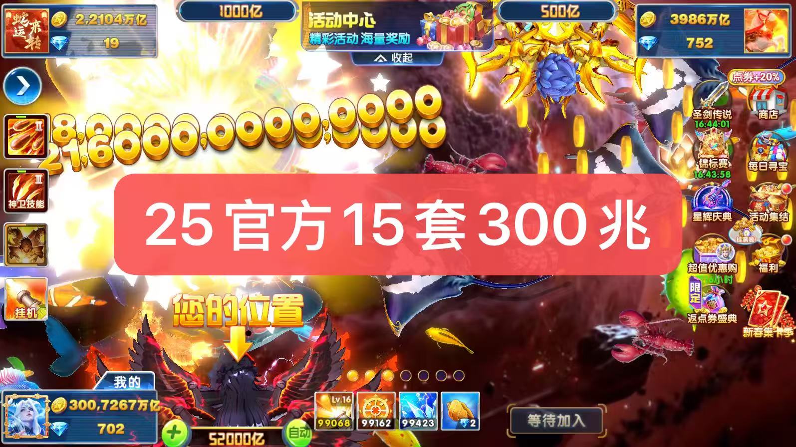 捕鱼大作战官方15套100兆金币出租
