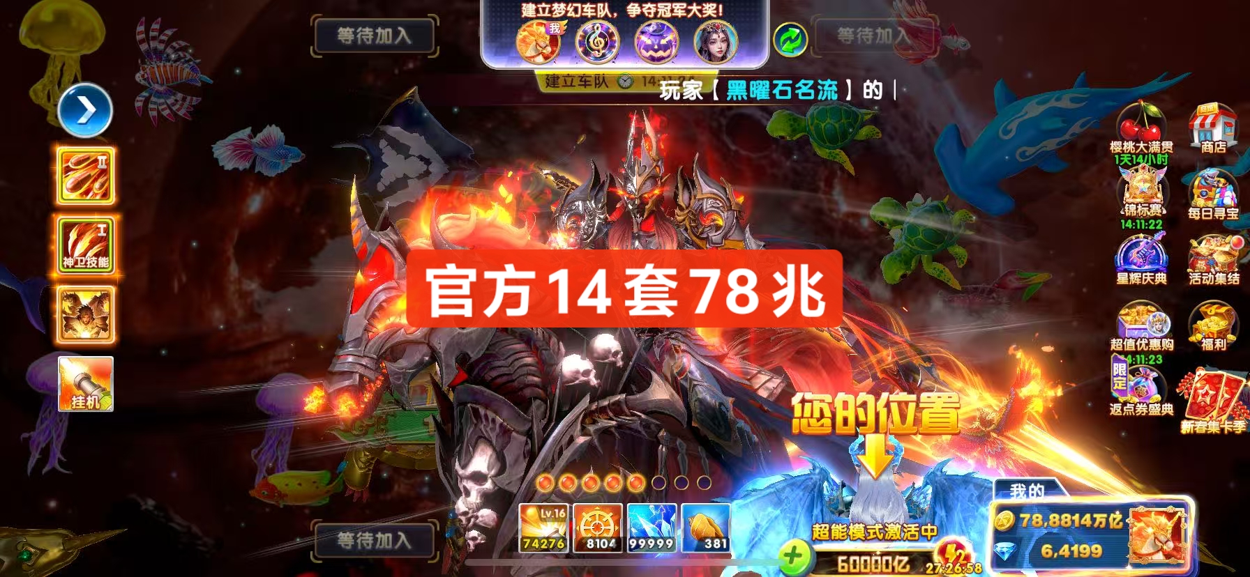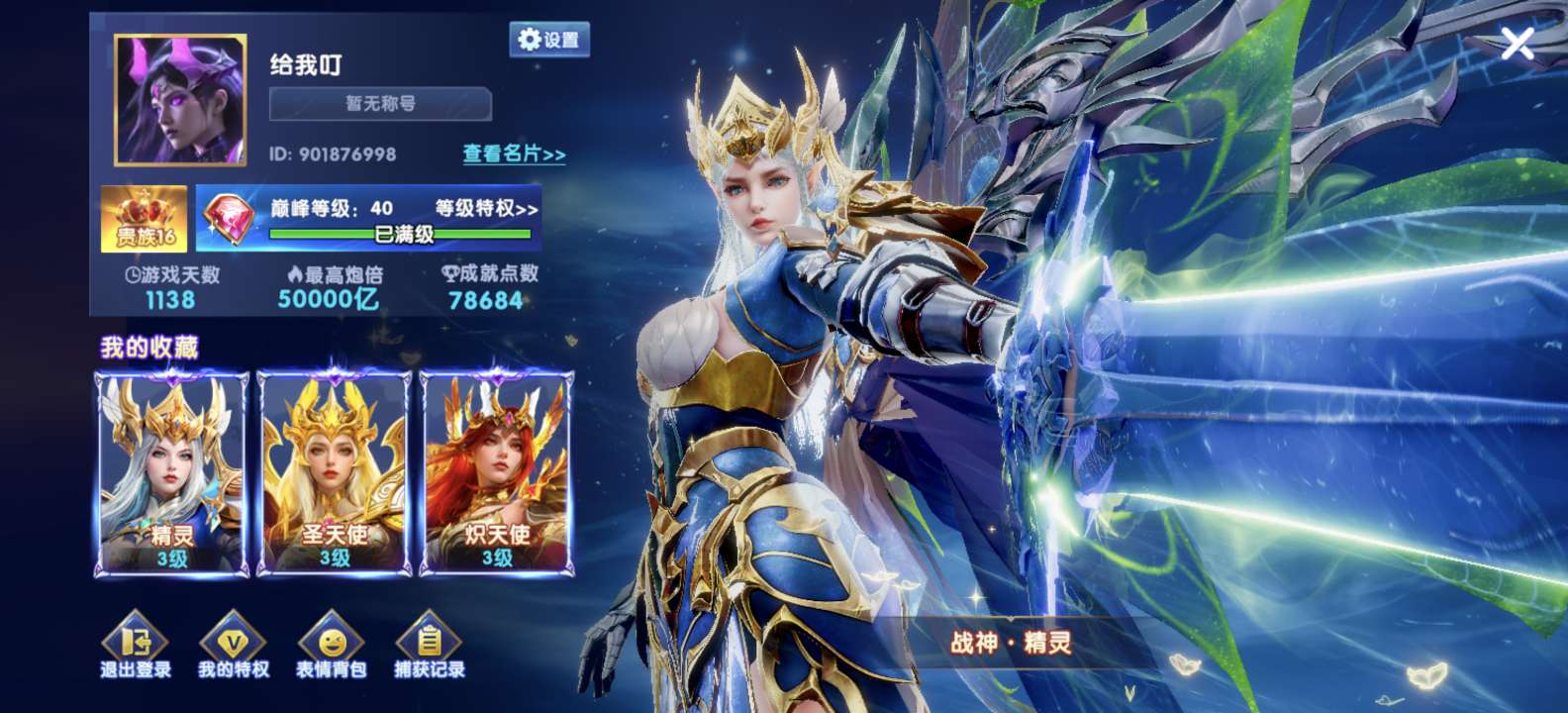 vivo贵族16 2兆救济金 11.5套55000炮,1313%加成 双神卫3000连击天使惩戒都有
