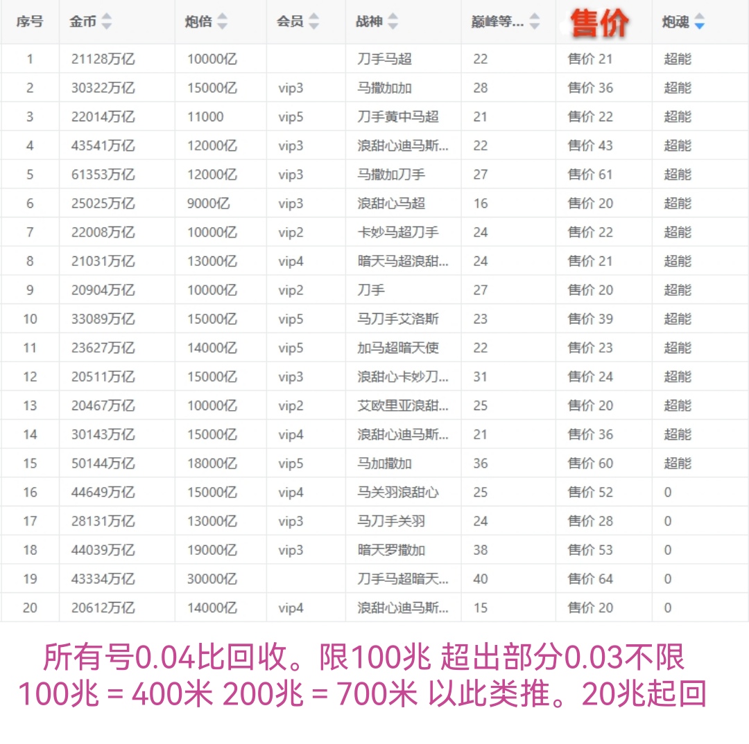 华为6.5套 特价出120兆金币 还有很多救济日租号,欢迎咨询选购。