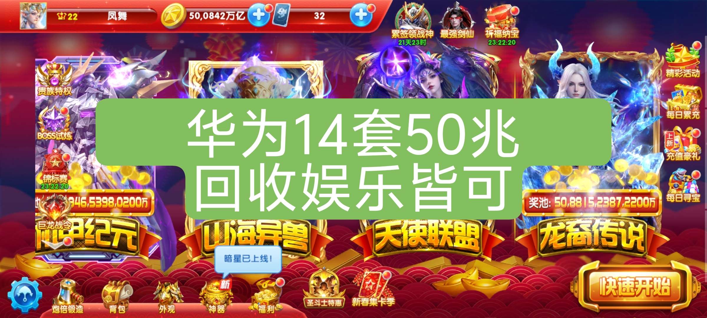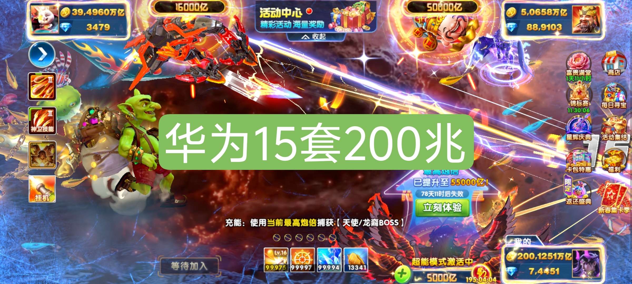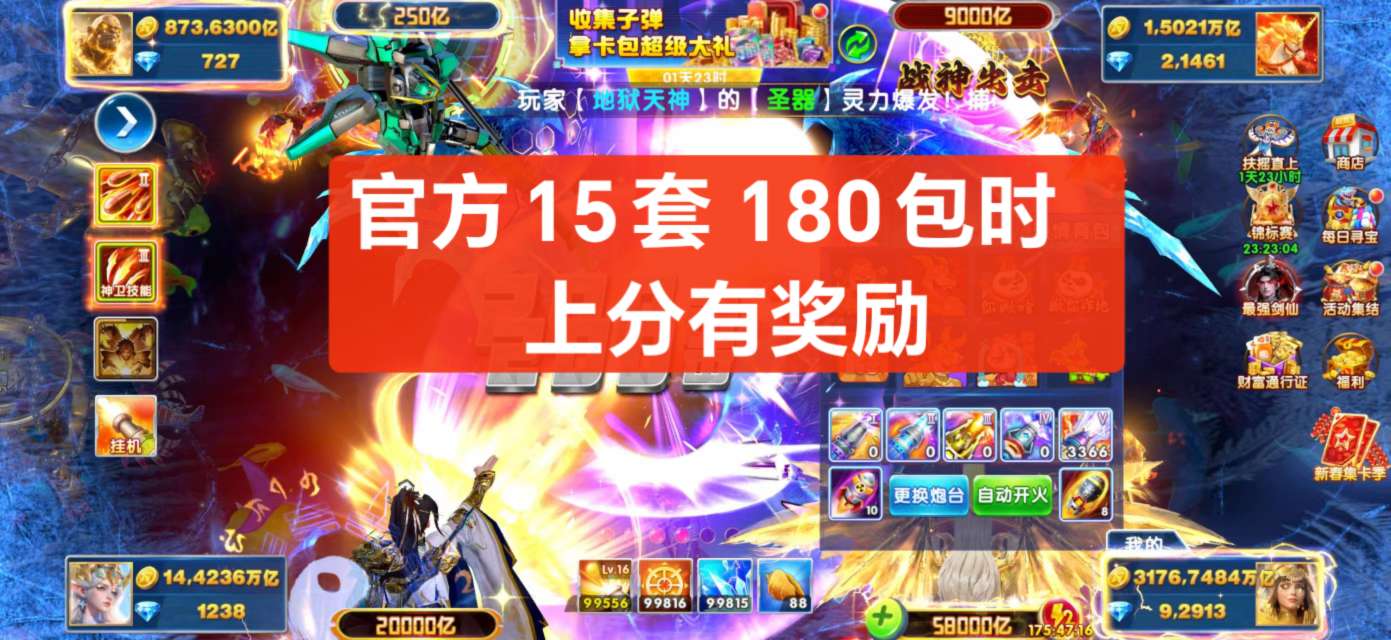 捕鱼大作战V15,10套,准11套,550炮,满巅峰,纯救济金1.8兆,天使544,组合技双神卫