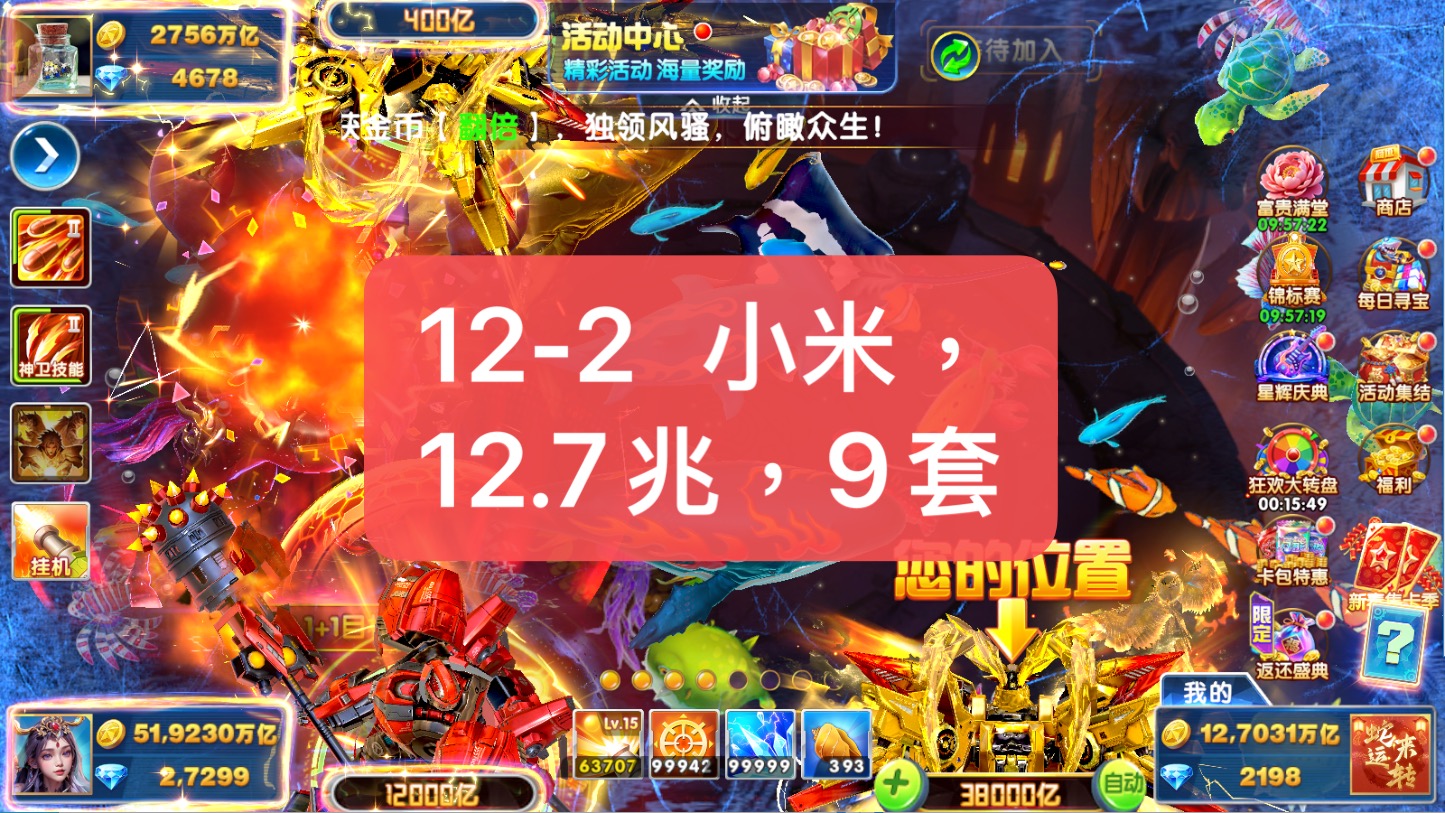 [安卓小米]捕鱼大作战小米版本,原60亿炮,金币9.4兆,巅峰13级,巨多boss未打!、