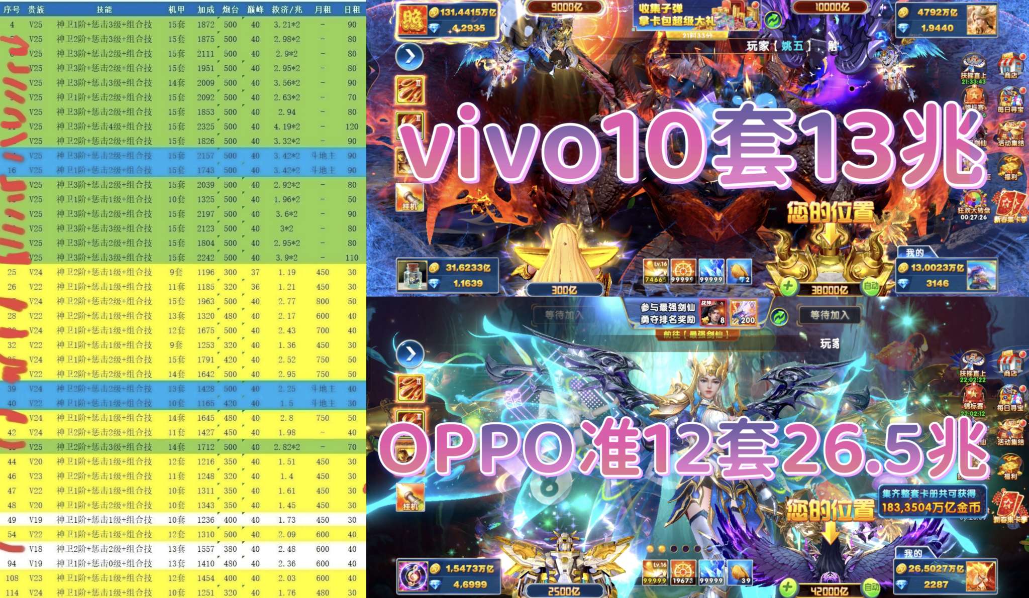 vivo版本-全可换绑-高配v20-全技能13套-加成1802上线救济2.5+冥斗士差一详情看图!