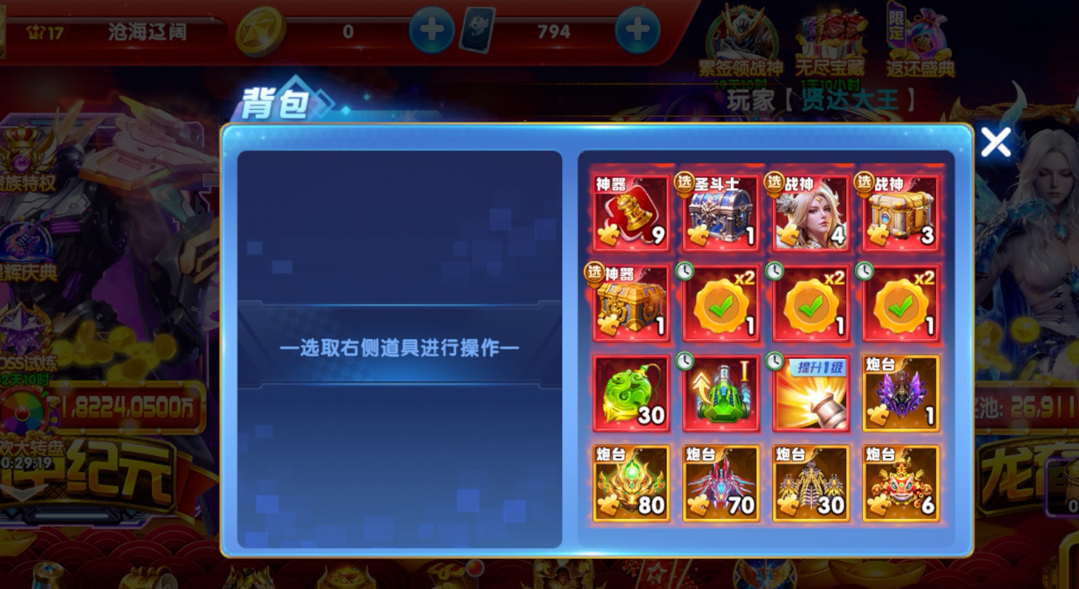 捕鱼大作战官服号|贵族13,资源很足,直接上手玩六芒星5级差18碎片,孙悟空神器5级差5碎片,两个