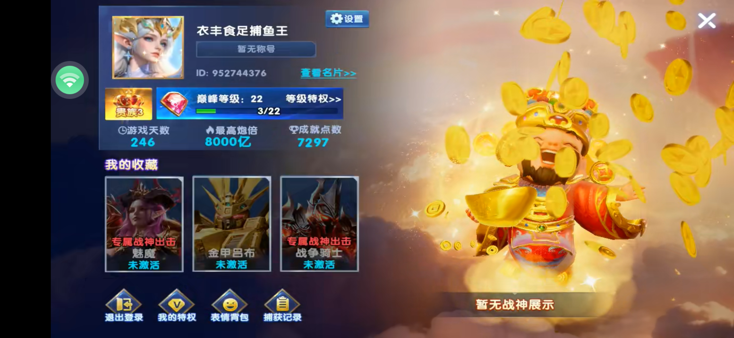 捕鱼大作战出租 150000万亿11000亿炮巅峰23多战神翅膀圣斗士,验证码登陆 打完为止。
