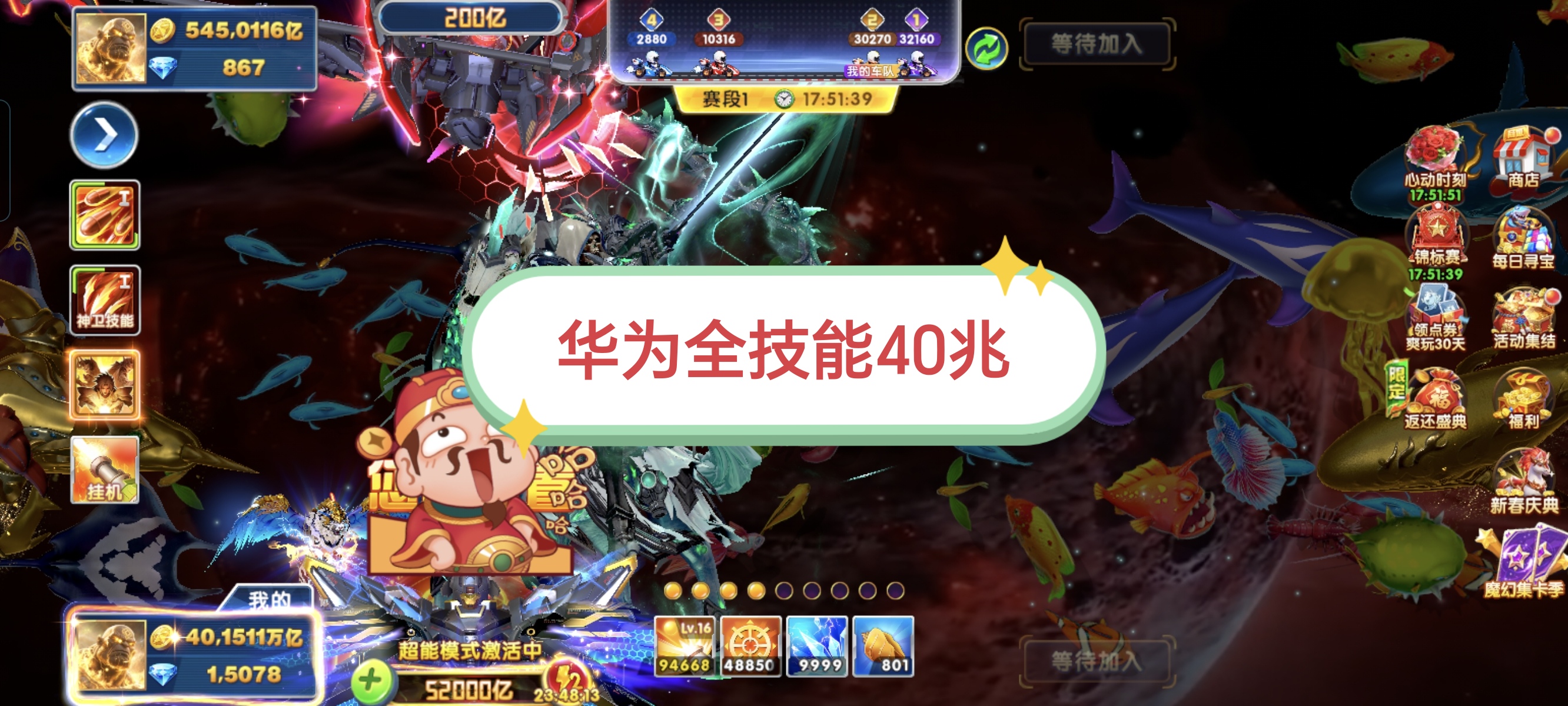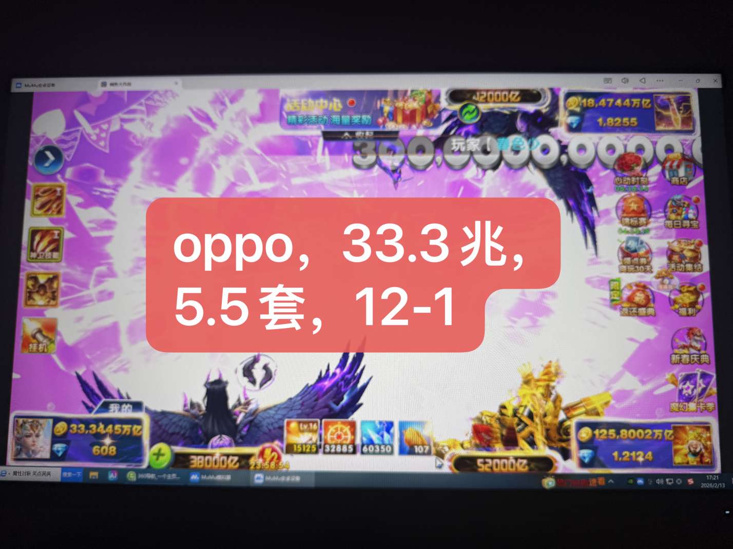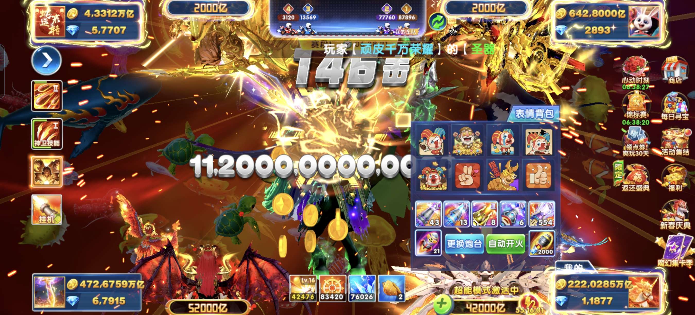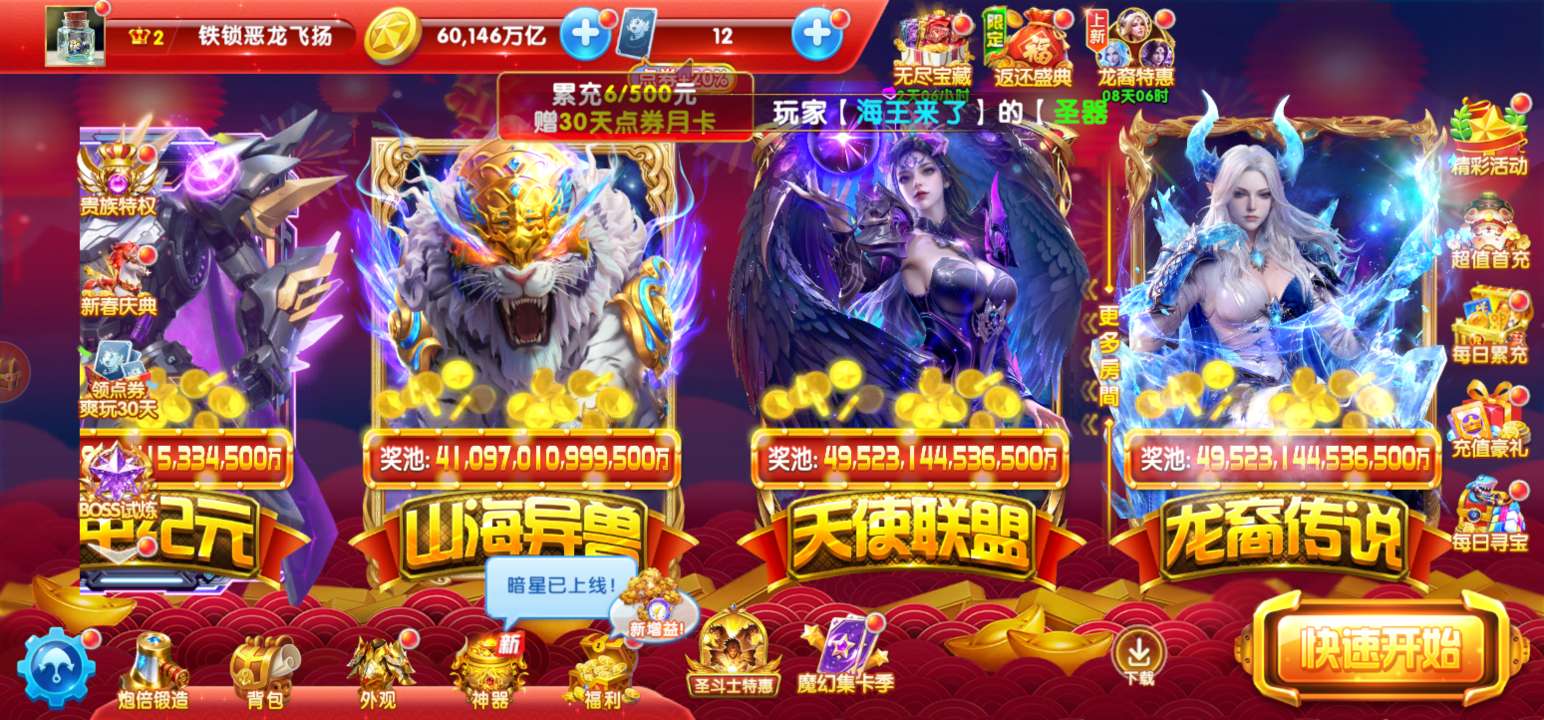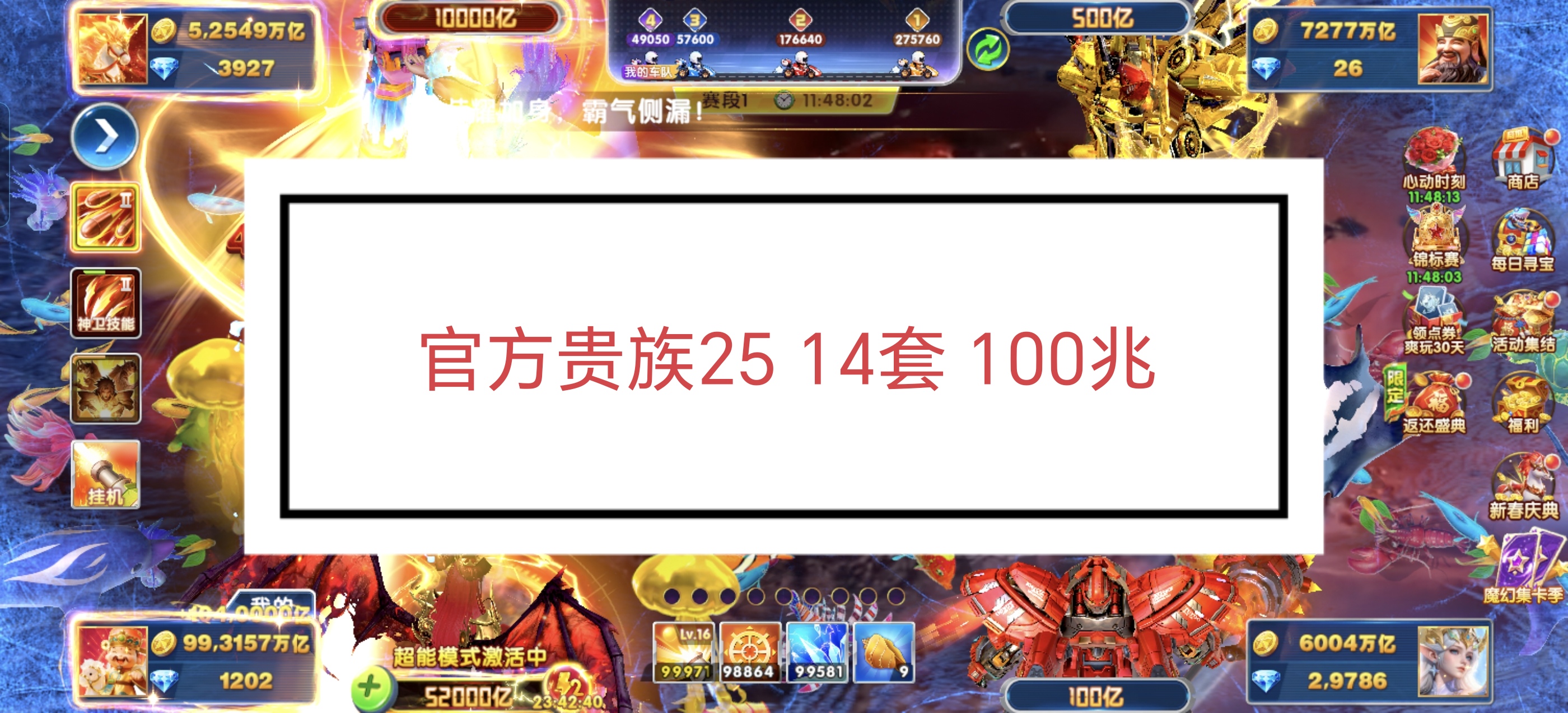 无绑v2,100+10炮6兆,巅峰17,月卡刚开,活动都在,有超能和吕布,8字头可改一切