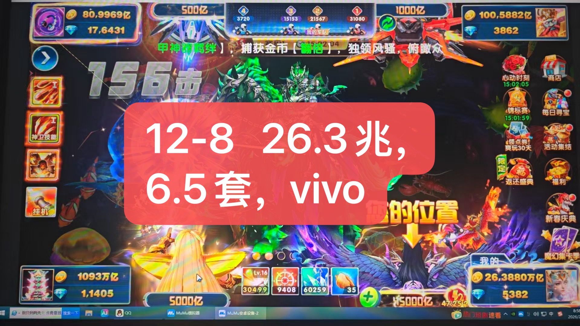 vivov16 10套 1冥斗士 7级白虎二郎神出战 加成1148 纯救济1.3兆