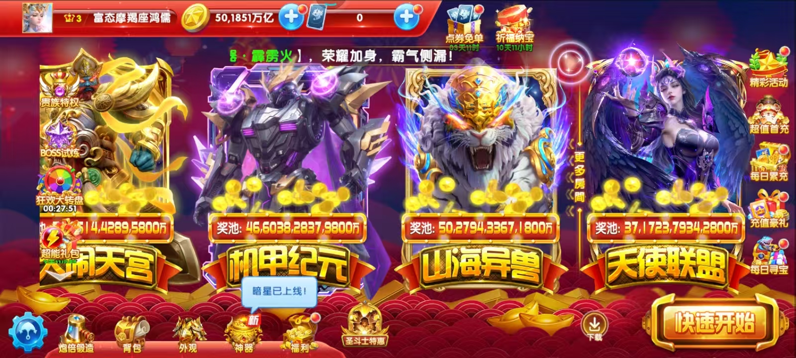 捕鱼大作战,vivo渠道服v15,机甲6套,组月租或周租,不能私自添加设备,基础救济1京左右