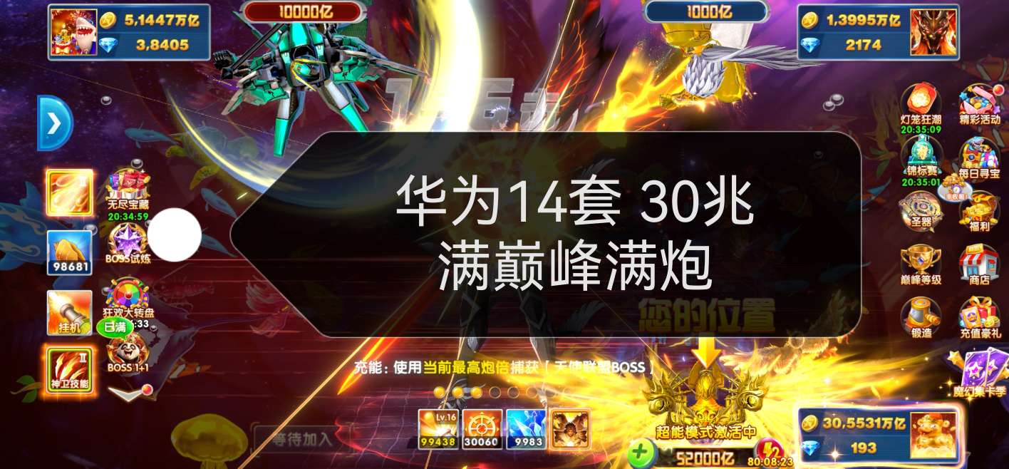 捕鱼大作战小米 14 兆 0.1+号,炮台 130,巅峰 27,带号出 破产号回 120