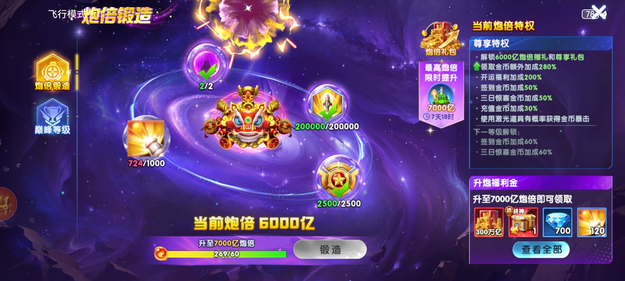 捕鱼大作战华为贵族25,特权12已过半,11套,1625加成 圣器升满和新三国各升一级即可,绝版星甲