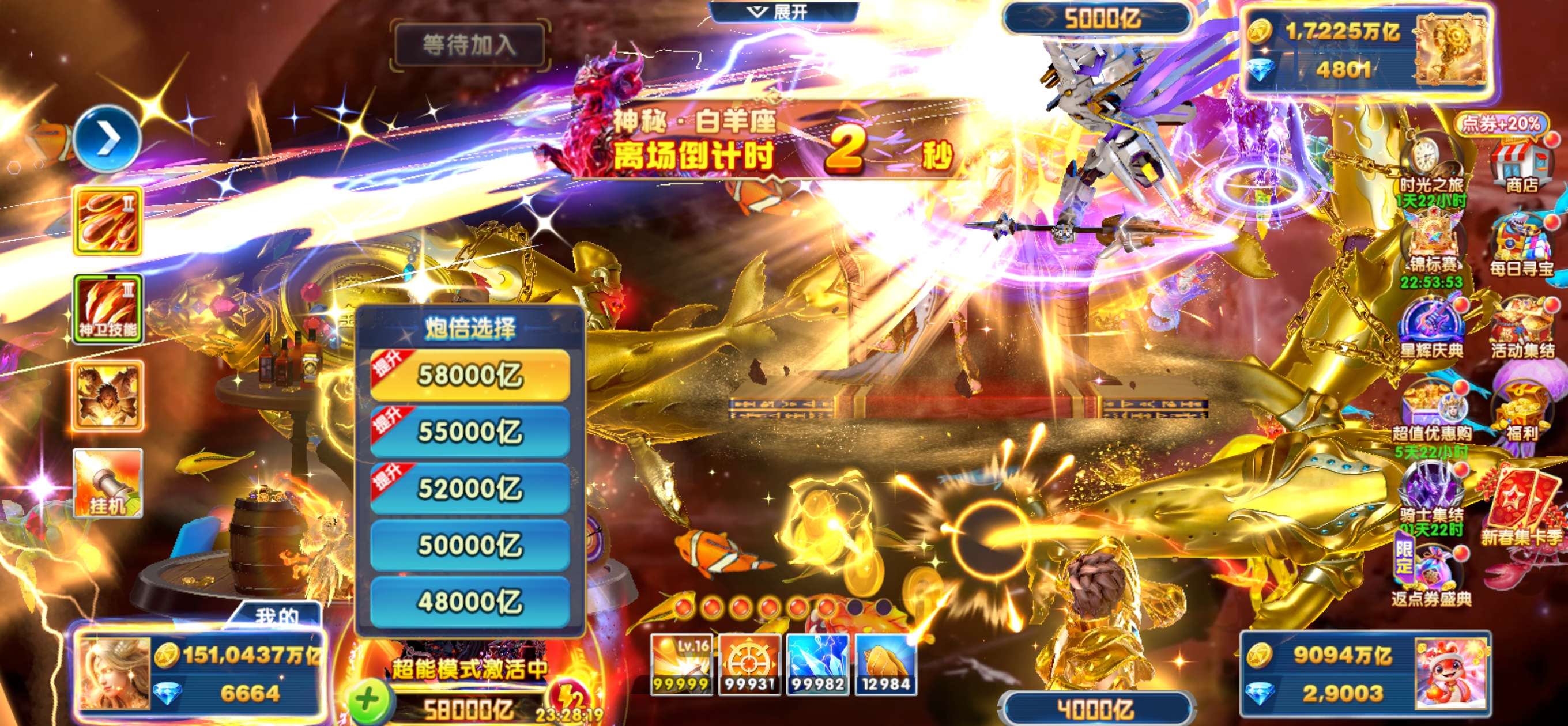 捕鱼大作战小米 v16 准 11 套,纯救济 1.8,满炮双技能,带一个完整圣器突破,可升 11 套