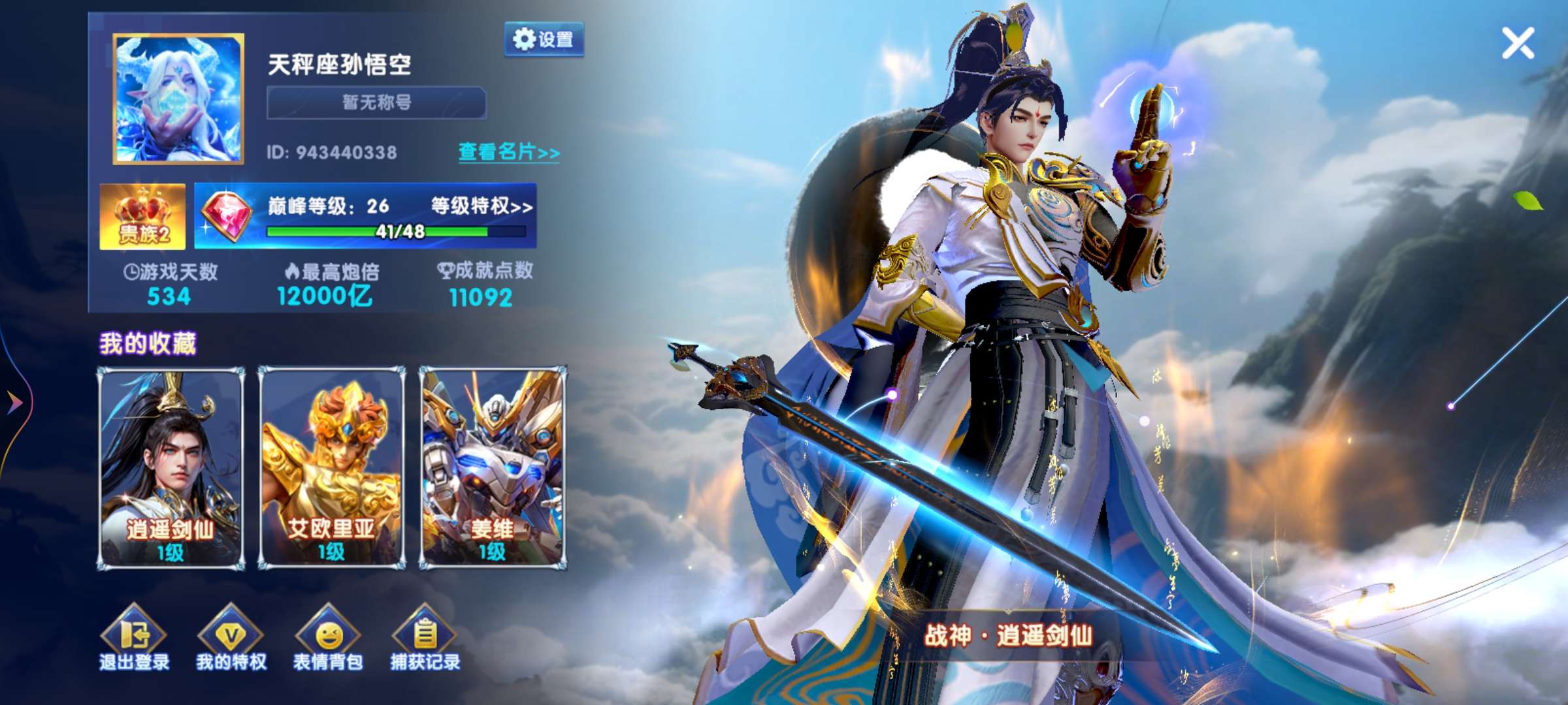 捕鱼大作战v14 特权10 巅峰×4 四级套 有28个战神还差1300升级到v15 ,全部能改绑