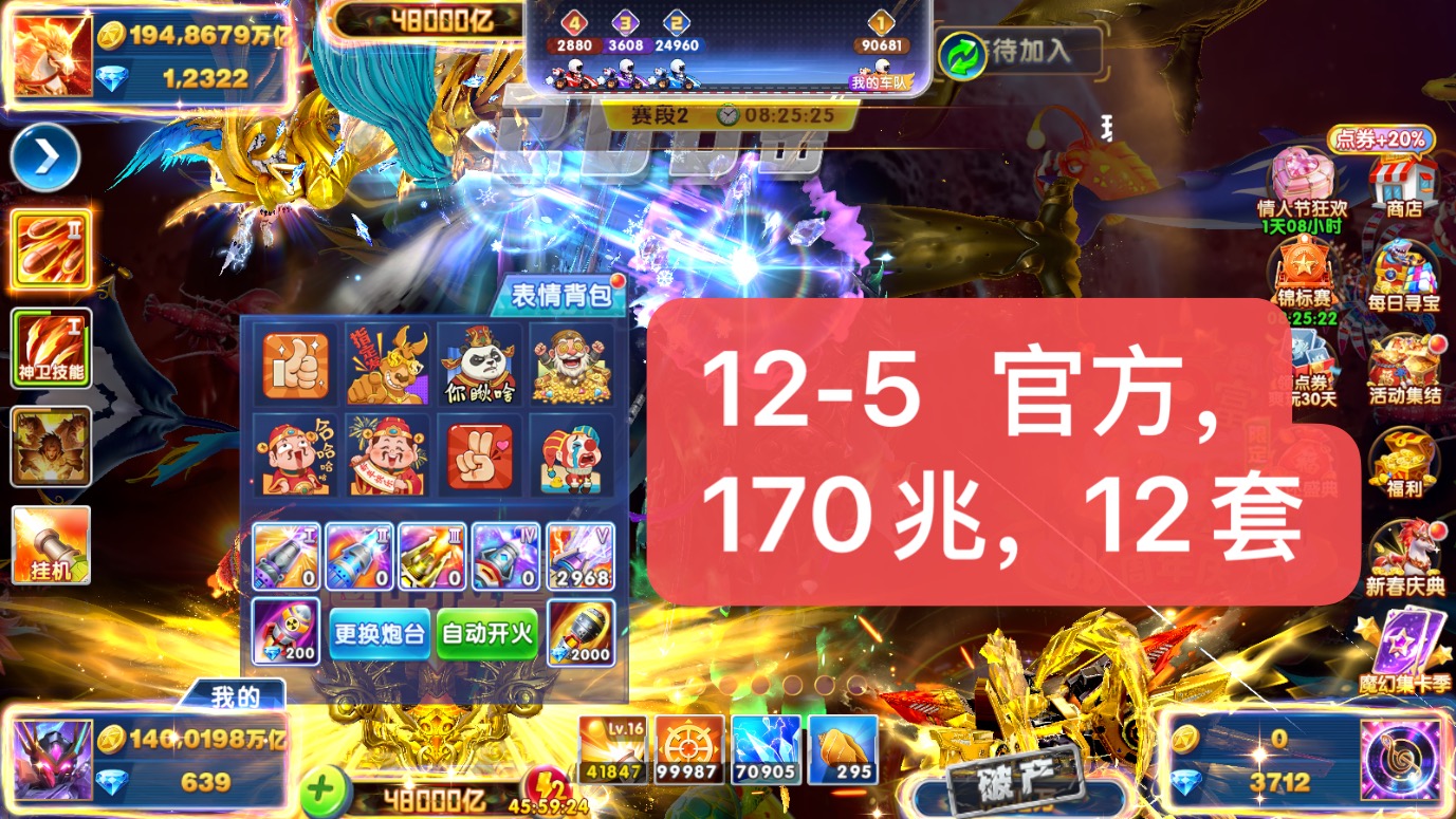 官方捕鱼大作战两个号一起120兆出金币可单卖