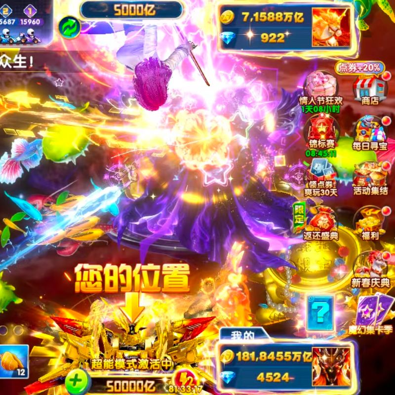 超能模式时效7000炮4兆,巅峰10级,安卓手机登录途游渠道斗地主