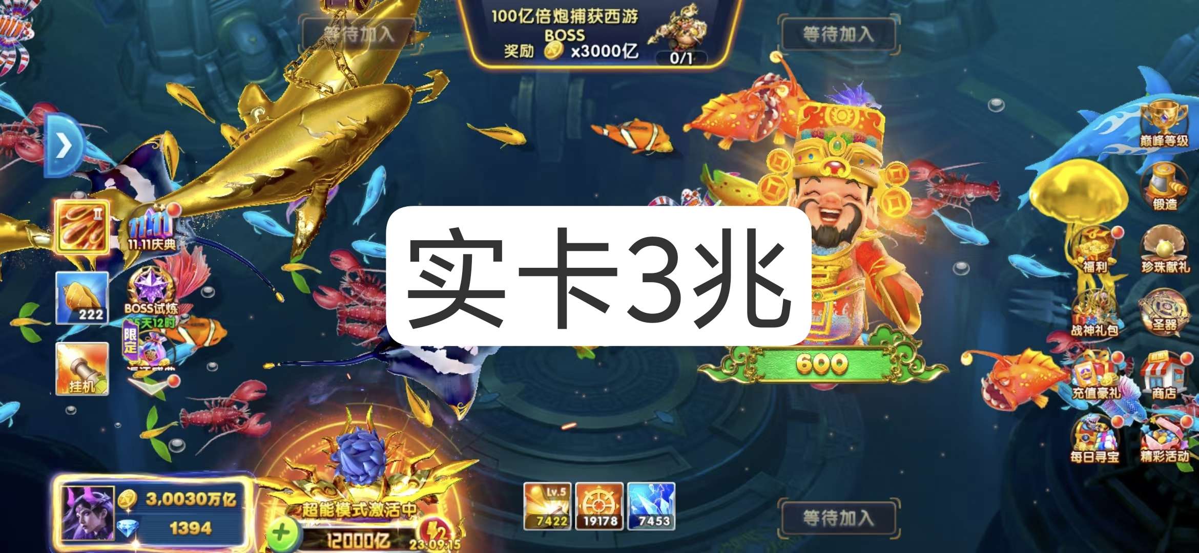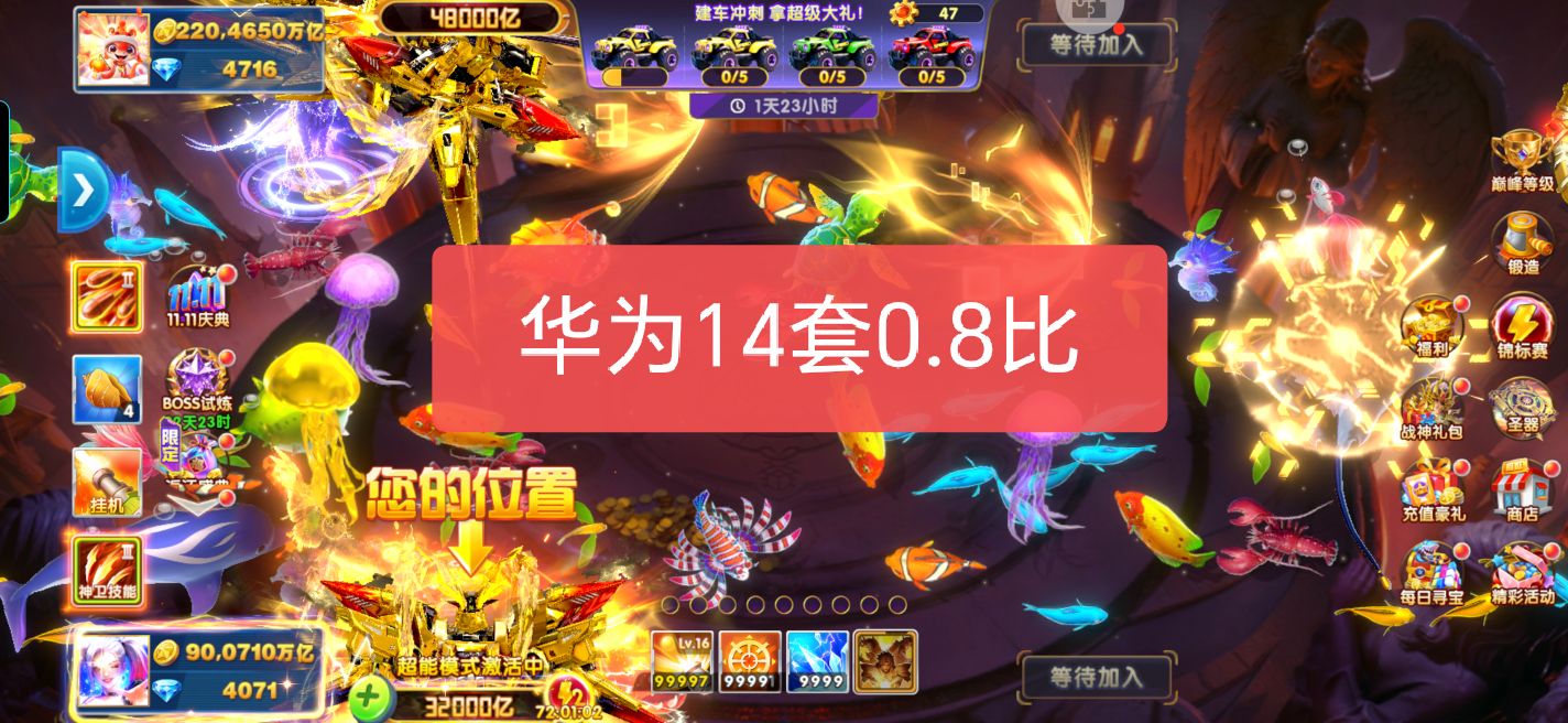 捕鱼大作战 1兆超高炮高巅峰多战神不玩秒回