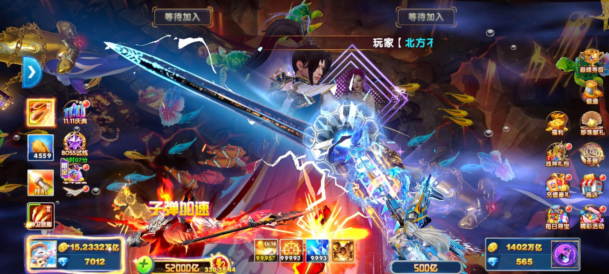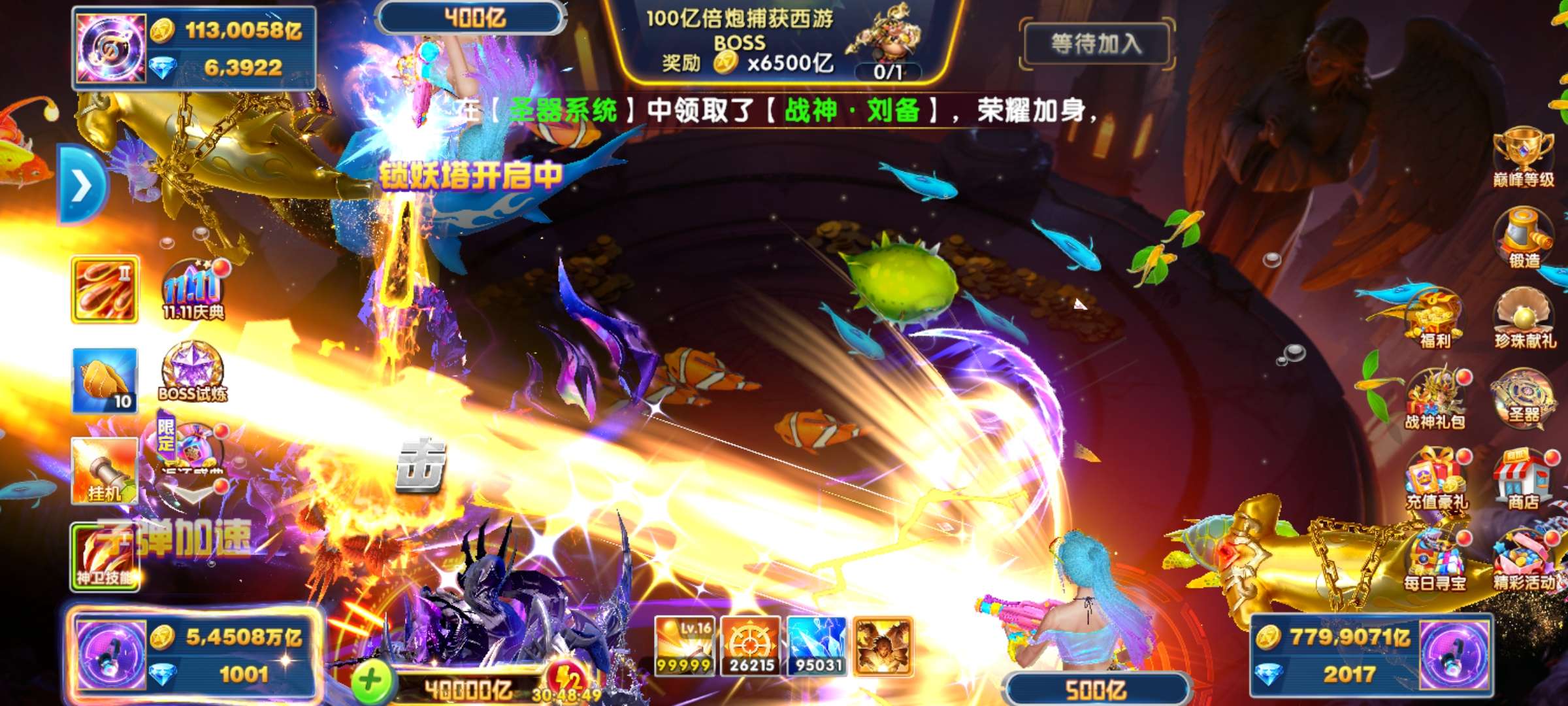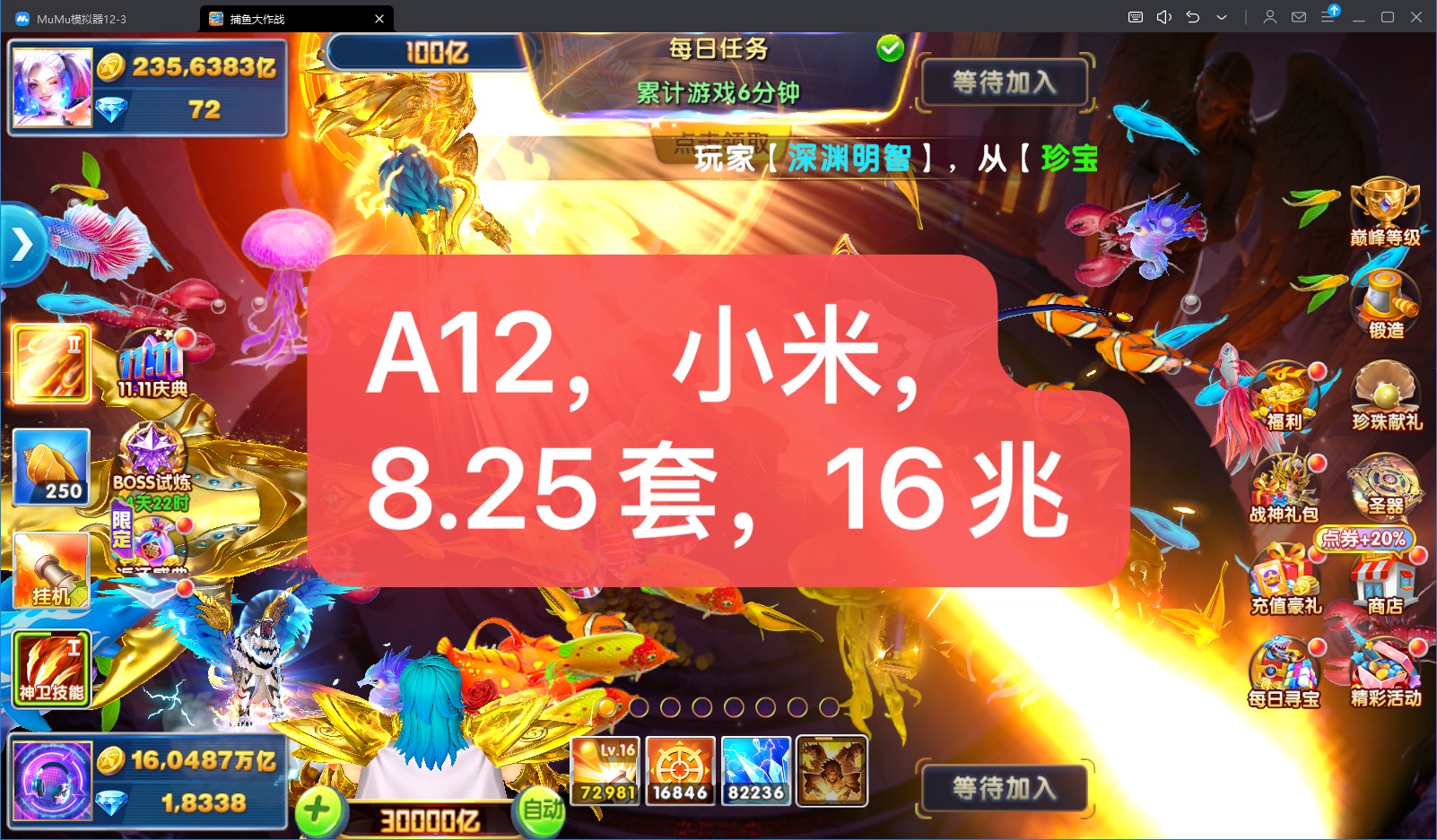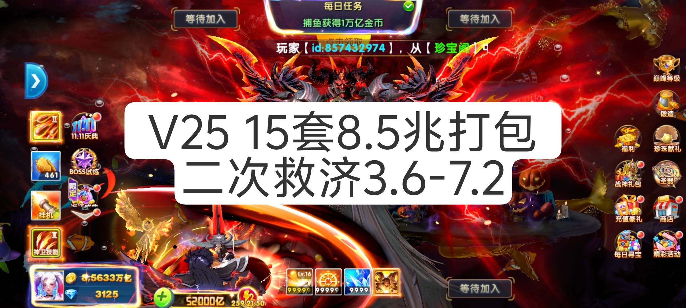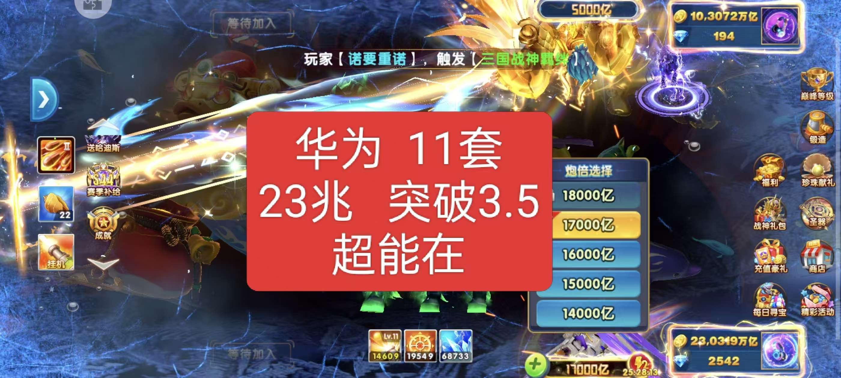 捕鱼大作战 1兆超高炮高巅峰多战神翅膀秒回