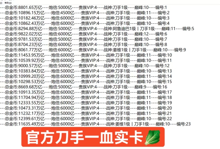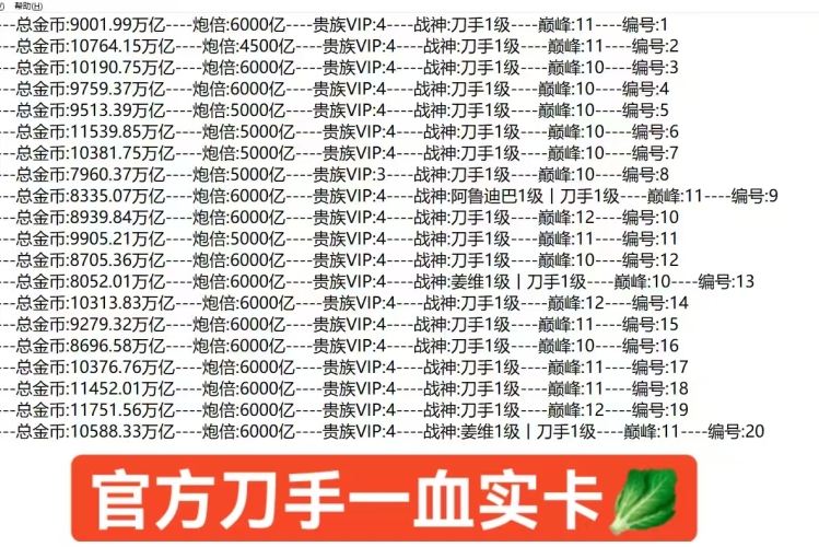 一血刀手官方实卡,安卓苹果通用,0.5比例,看上咨询,300点券随便用。出分