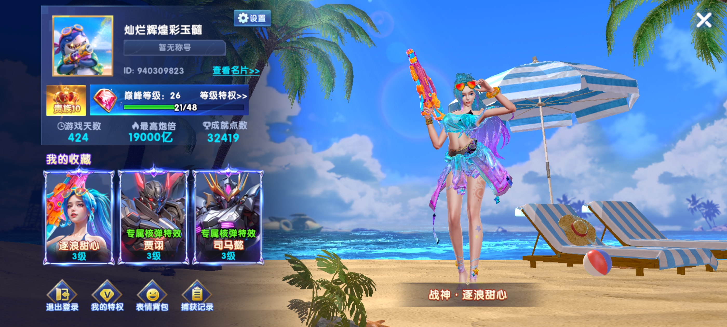无绑v1 5000炮 14500万亿 狂暴2400+ 巅峰10 道具充足上线领翅膀