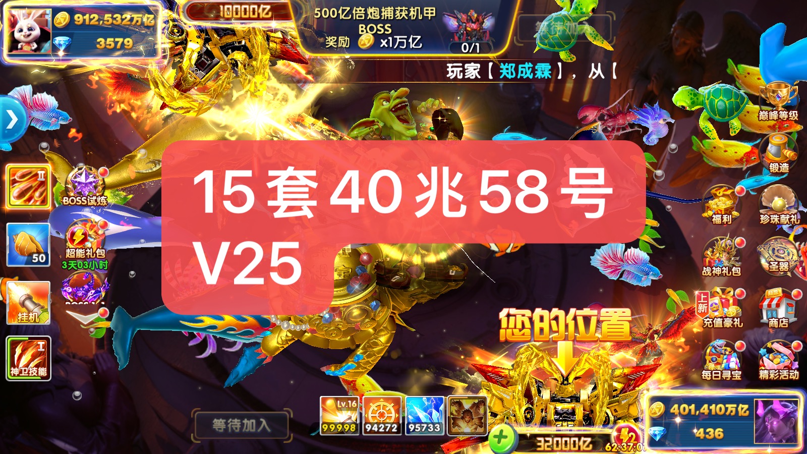 捕鱼大作战【苹果安卓】大作战金币40兆金币15级机甲套装纯玩