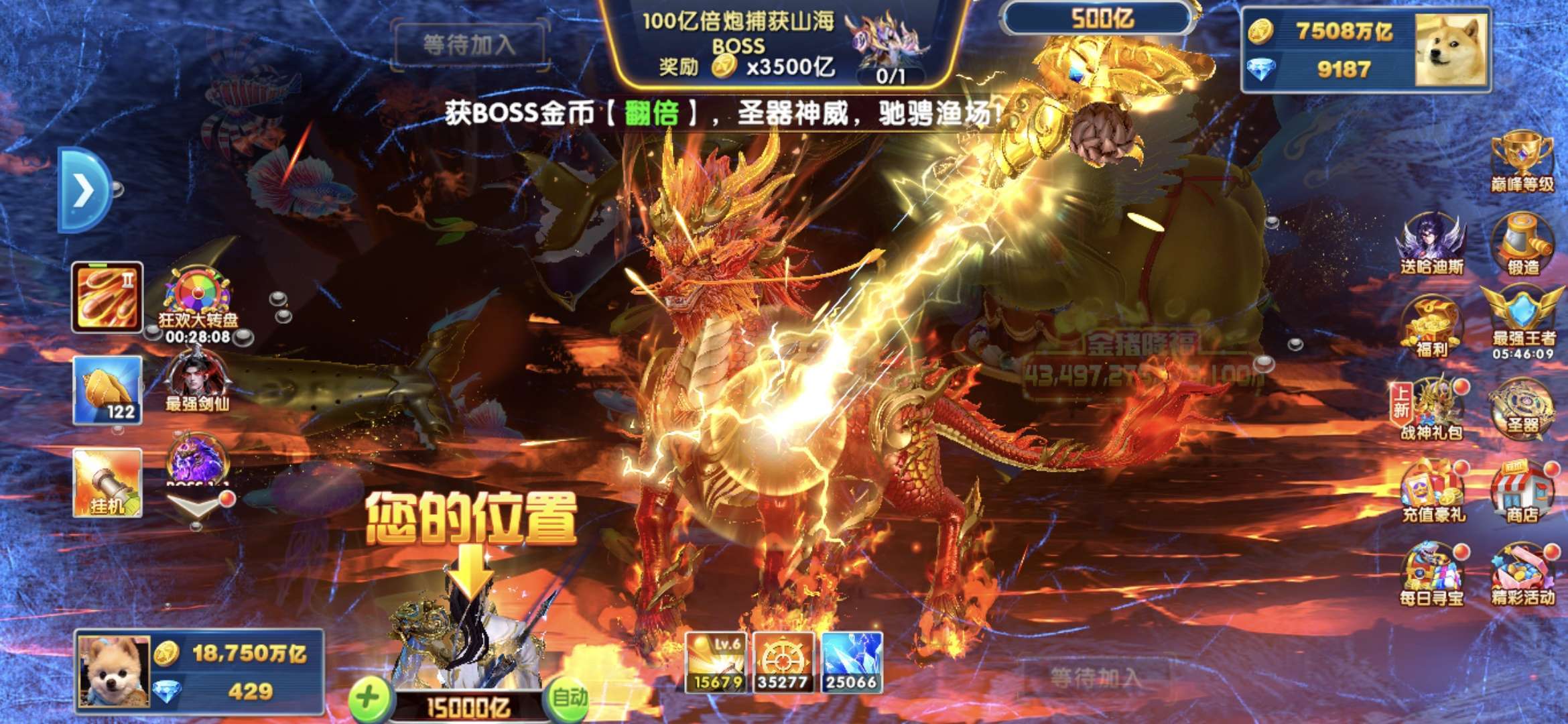 无绑v1 5000炮倍 12400万亿币狂暴2500 巅峰11 道具充足上线领翅膀