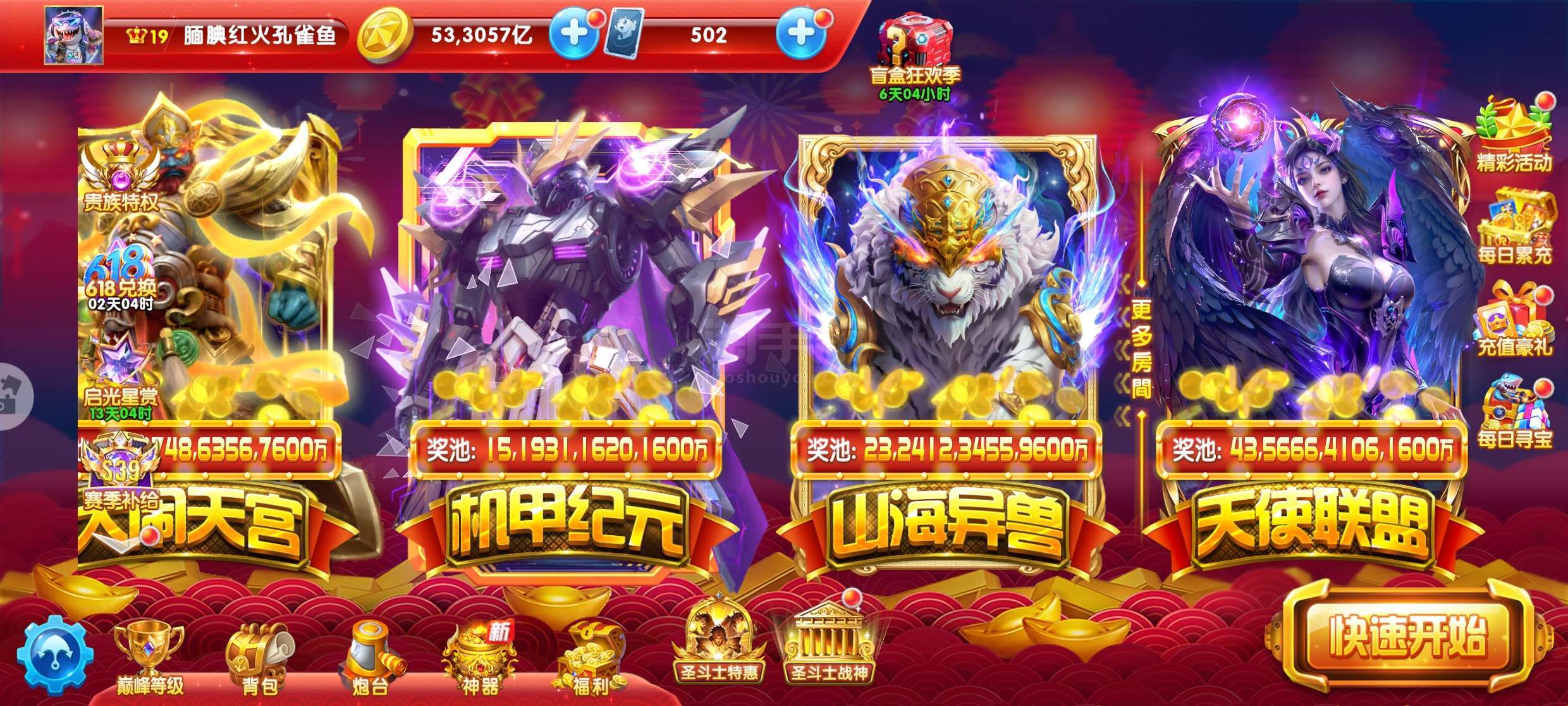 无绑v1 5000炮倍 13300万亿币激光炮台道具充足上线领翅膀
