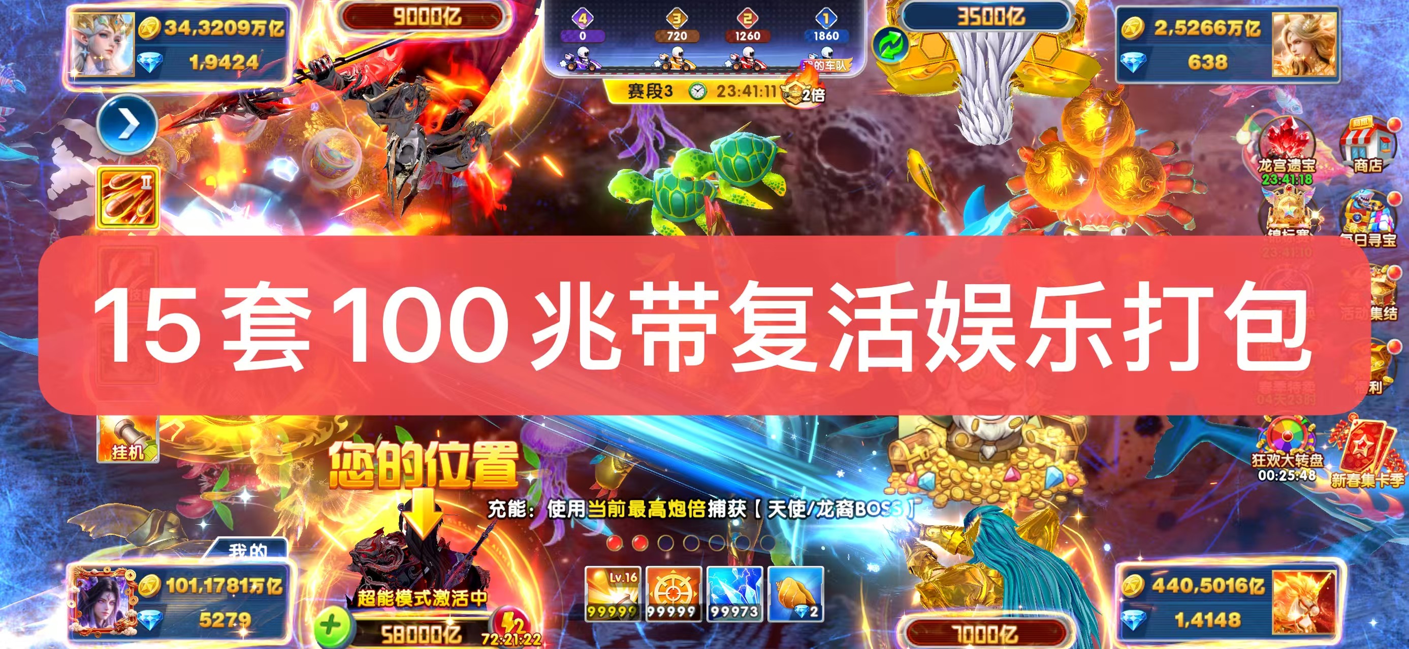 捕鱼大作战官方15套100兆金币出租