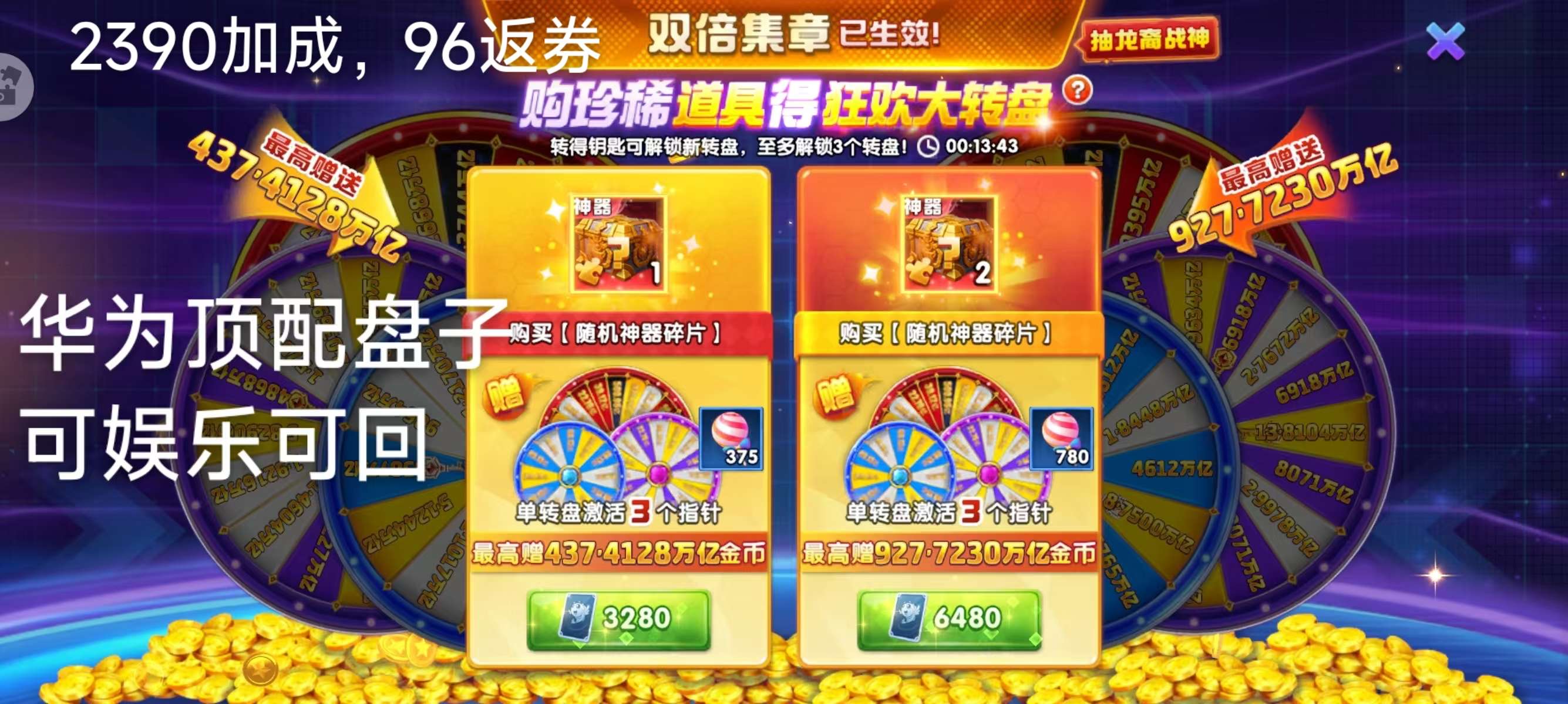 捕鱼大作战华为顶配盘子礼包,上分可回