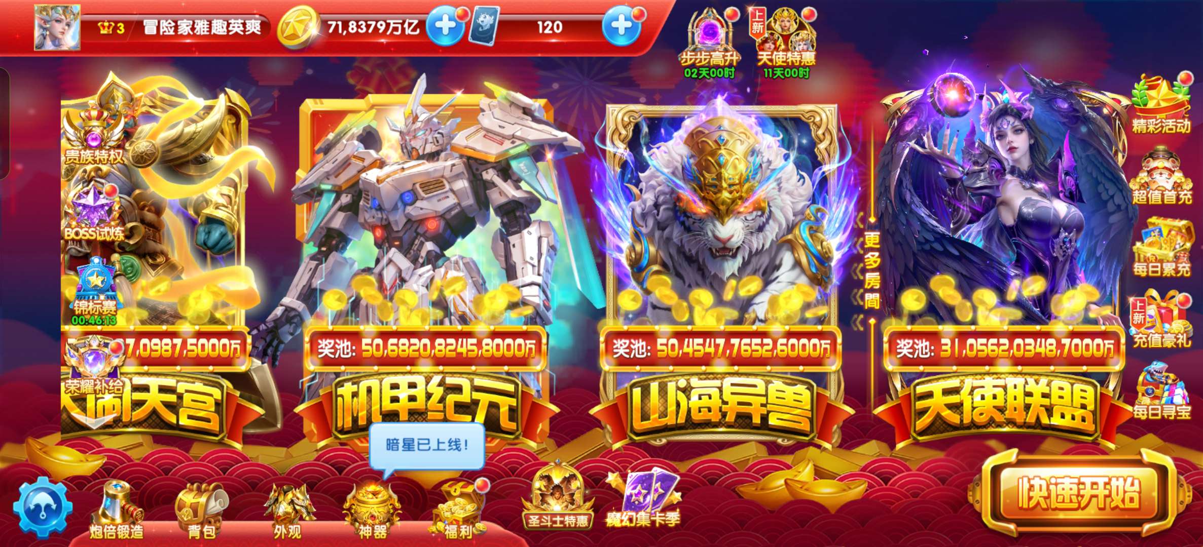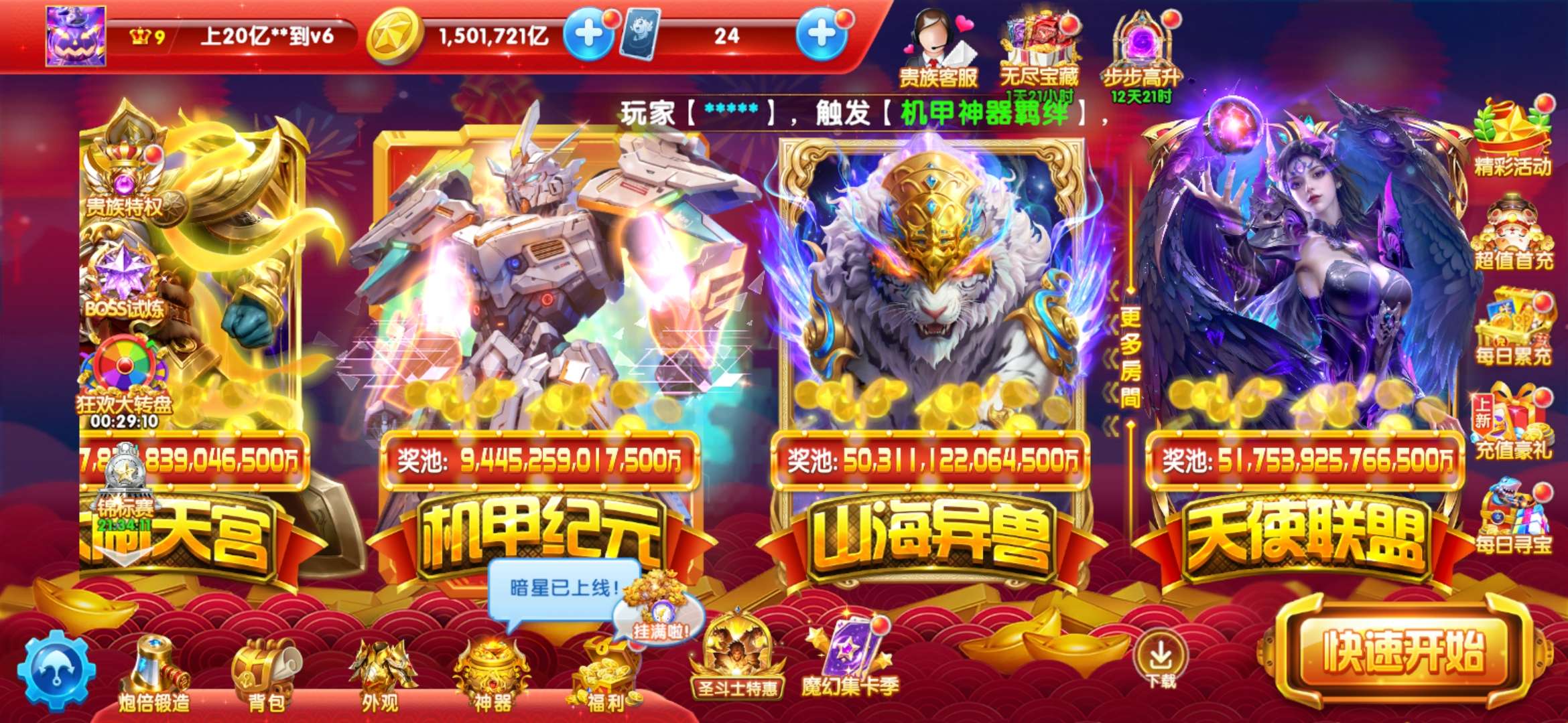 72兆 15000亿炮v3 马超 圣斗士 金币高 资源多 特权全安卓小米都能玩 支持改密换绑