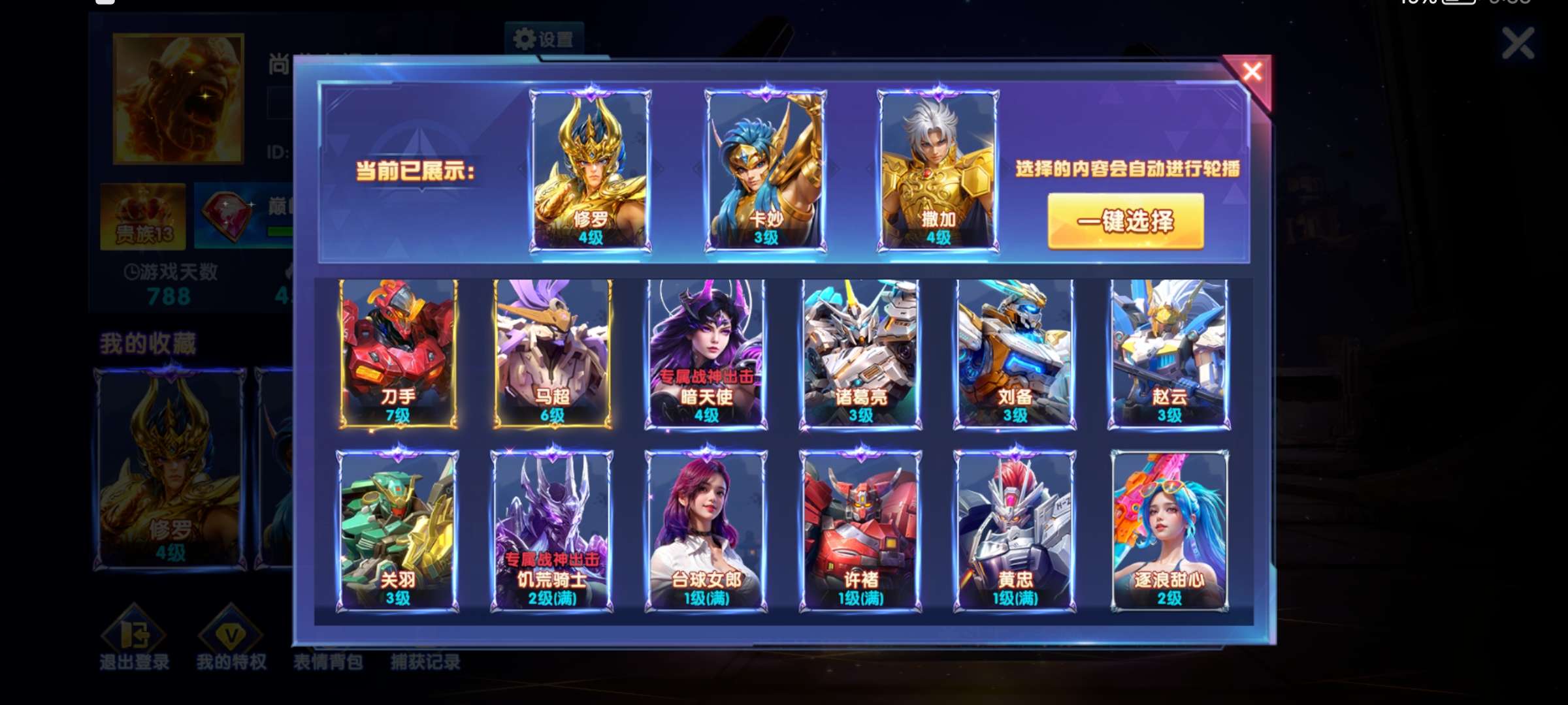 华为v20,13套加成1300,魅魔已激活,全技能,双神卫。救济2京,特权9,其他看图