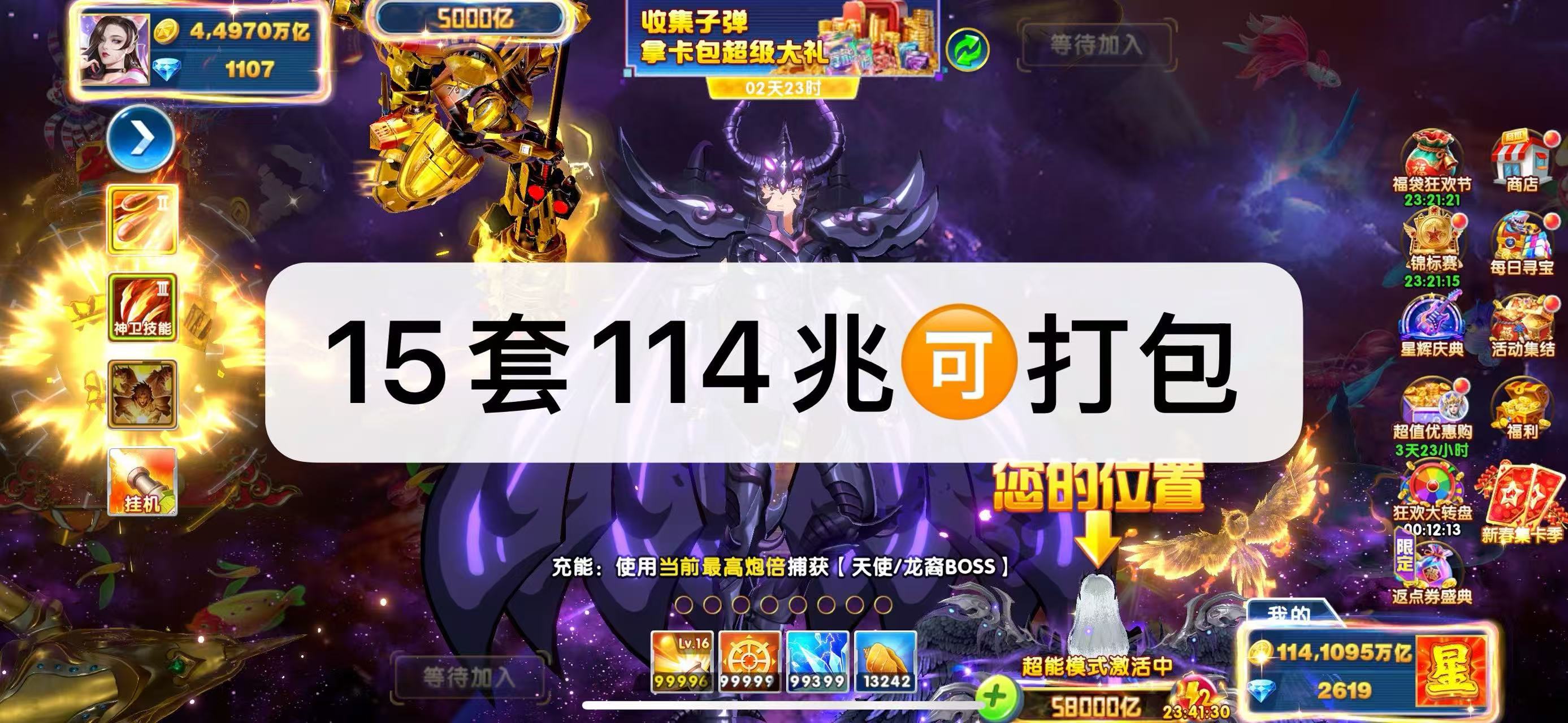 捕鱼大作战特权10 纯救济1.4兆 天使332 曹操 大天使战争骑士出战 七级套